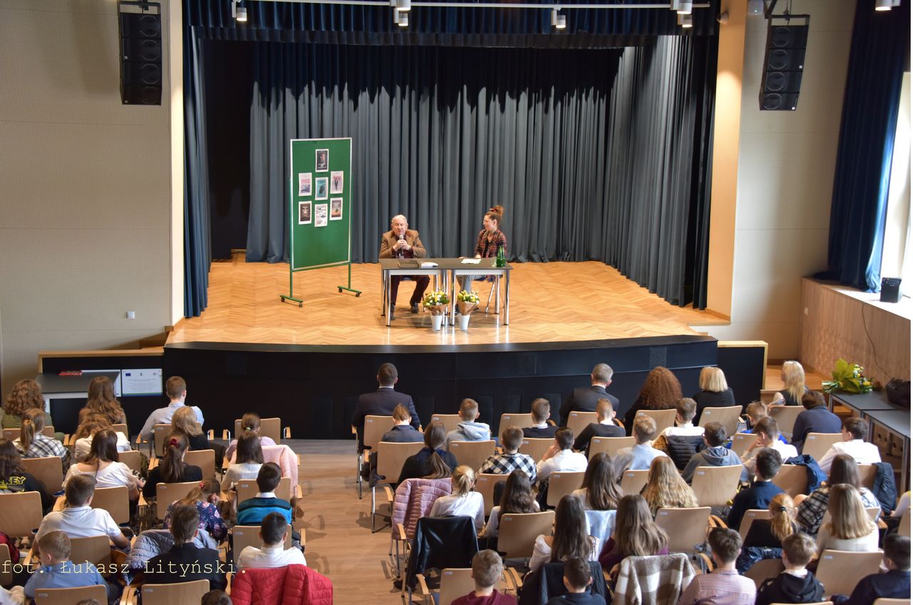 W spotkaniu z Panem Bogdanem Bartnikowskim uczestniczyli uczniowie klas siódmych naszej szkoły wraz z nauczycielami oraz zaproszeni goście.