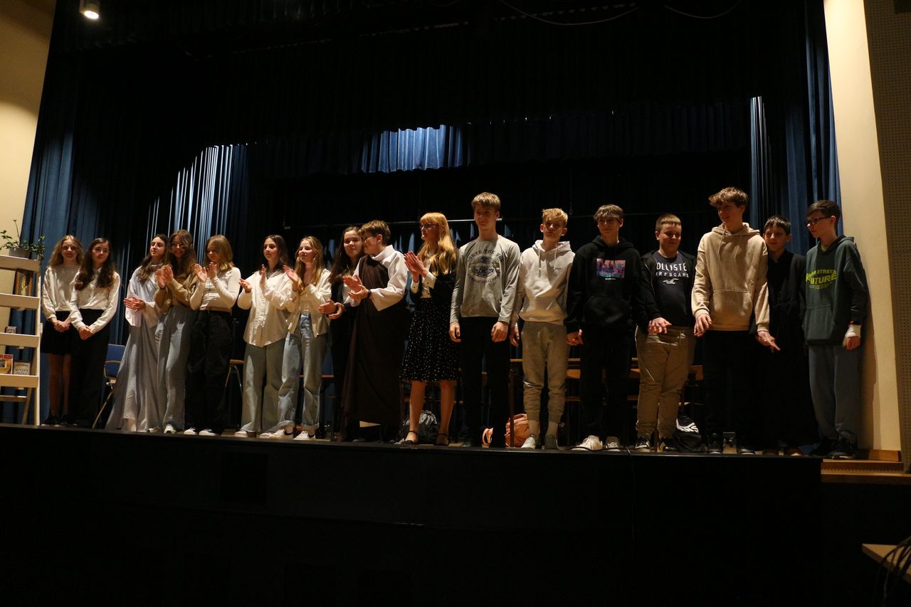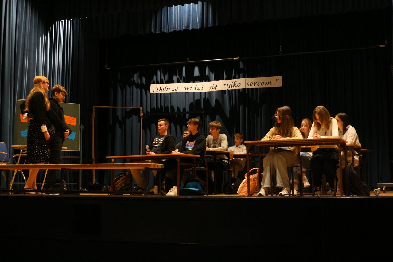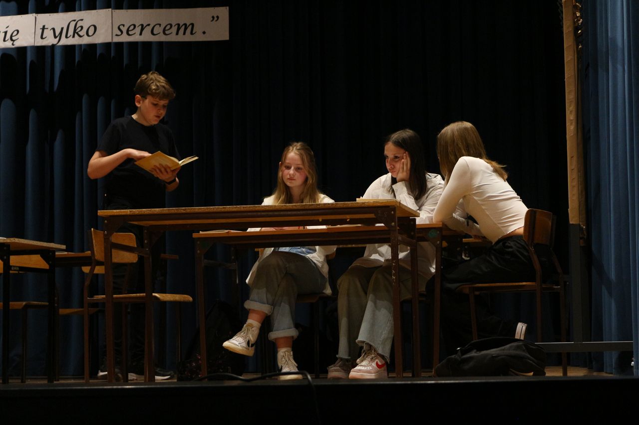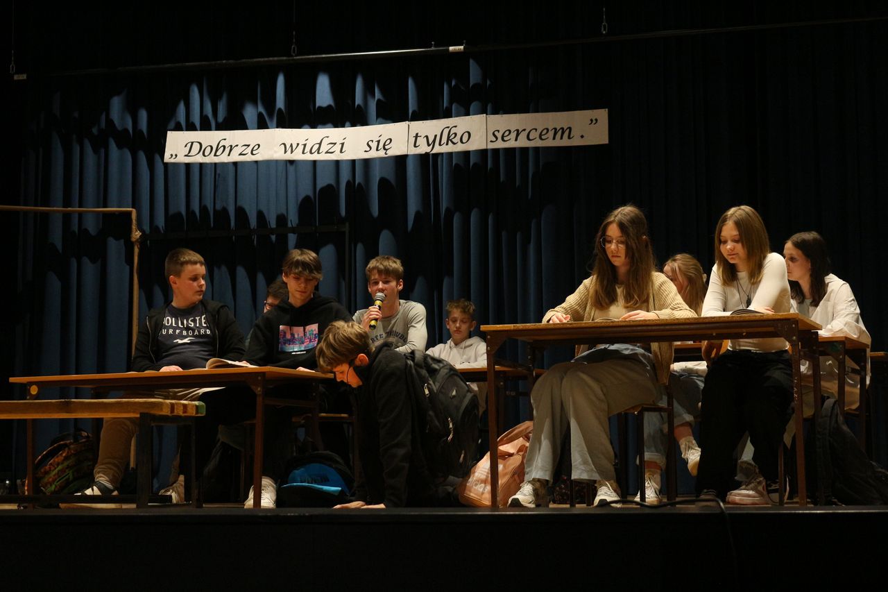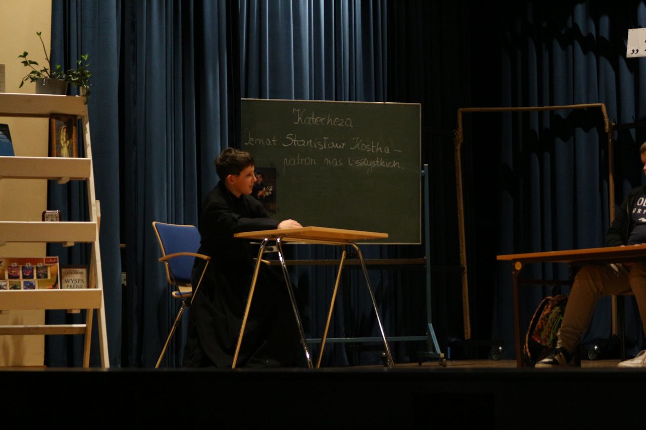 Dnia 29.03.2023 r. w ramach rekolekcji wielkopostnych młodzież z klas VIII a, VIII b i VIII d zaprezentowała na sali WDK w Osieku spektakl pt. „Boży Dar” wg scenariusza pani Anny Słonki. Przedstawienie opowiada historię chłopca nie akceptowanego przez rówieśników. Pewnego dnia Bożydar pojawia się w szkole jako nowy uczeń i od razu zostaje wyśmiany przez swoich kolegów i koleżanki. Właściwie to nic im się u niego nie podoba. Nawet jego imię, nazwisko i ubiór są powodem do robienia sobie z niego żartów. Na każdym kroku rówieśnicy pokazują mu, że jest inny, a przez to gorszy. Dokuczają mu, szykanują, podkładają nogę. Aż pewnego razu po kolejnym upadku trafia do szpitala, a potem znika z niego w nie wyjaśnionych okolicznościach. Dopiero wtedy jego koledzy zaczynają odczuwać skruchę i wyrzuty sumienia. Przedstawienie niesie ze sobą przesłanie: każdy z nas jest wyjątkowy, każdy zasługuje na szacunek, każdy jest Darem Bożym.