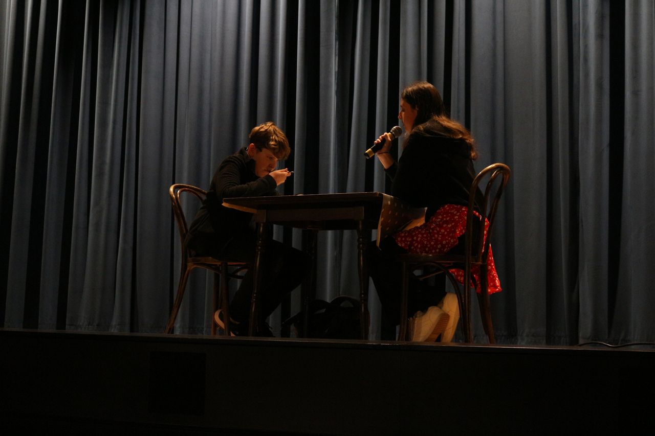 Wszyscy aktorzy zagrali swoje role bardzo przejmująco i realistycznie. W głównej roli jako Bożydar/Jezus wystąpił Wojciech Zięciak. W pozostałych rolach: Milena Sikora (nauczycielka), Bartłomiej Konarczak, Kacper Zając, Kacper Bałamucki, Kordian Kubarek, Nataniel Jarosz (Igor, Kacper, Wiktor, Wojtek i Kuba – koledzy, którzy dokuczają Bożydarowi, postacie nawiązują do oprawców Chrystusa), Dominka Bienia, Zuzanna Urbańczyk, Amelia Żmudka (Alicja, Zuza i Marta – przyjaciółki, które drwią z wyglądu Bożydara), Dominik Czachowski (Szymon – bezinteresownie pomaga Bożydarowi, postać nawiązująca do Szymona Cyrenejczyka), Zuzanna Treścińska (Weronika – wspiera Bożydara, gdy inni go odrzucają, postać nawiązująca do Św. Weroniki), Miłosz Naglik (ksiądz), Maja Jekiełek ( mama Bożydara/Maryja) oraz Anna Luranc (sekretarka). Obsługą techniczną przedstawienia zajęli się Maksymilian Turek, Kacper Ryś i Łukasz Bies oraz panowie Aleksander Piasecki i Janusz Dusik. Spektakl publiczności zapowiedziały niebanalnie Zuzanna Warzecha i Karolina Kozieł, a nad całością dzieła czuwali: ks. Przemysław Gorzołka oraz panie Agnieszka Frazik i Ilona Cybuch. Występom towarzyszył piękny śpiew chóru pod batutą pani Bernadety Stawowczyk-Zemanek oraz rap ks. Przemysława. Przedstawienie zostało zaprezentowane ponownie 02.04.2023 r. dla społeczności lokalnej na sali WDK w Osieku.