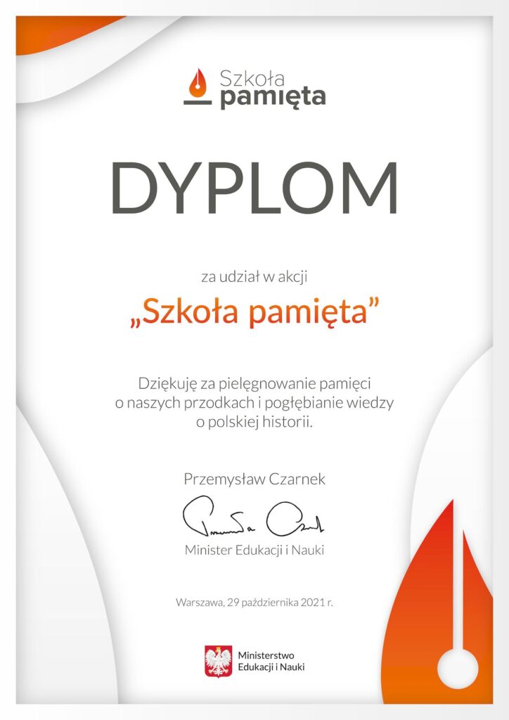 „Szkoła pamięta” Cała społeczność naszej szkoły po raz kolejny włączyła się w ogólnopolską akcję „Szkoła Pamięta”. Akcja organizowana jest przez Ministerstwo Edukacji i Nauki. Odbywa się w okresie, w którym w sposób szczególny wspominamy zarówno naszych bliskich, jak i tych, którzy zapisali się w historii – ogólnonarodowej i lokalnej. Nasza pamięć o nich jest wyrazem […]