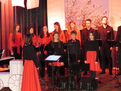 Koncert powstał z potrzeby opowiedzenia o tym , co najważniejsze – o domu. Nie tylko tym z cegieł, ale o domu jako przestrzeni bliskości, wspólnoty i wartości. W opowieści prowadzących pojawiły się słowa o pamięci, korzeniach, rodzinie, różnorodności, a także doświadczeniach, które zmieniły nasz świat – pandemii i wojnie na Ukrainie. Wzruszające teksty przeplatały się z pięknymi utworami muzycznymi, które wykonał chór Camminando, złożony z absolwentów dawnego Gimnazjum im. Kazimierza Jedrzejowskiego w Osieku, oraz uczniowie naszej szkoły: Maja Januszewska, Zuzanna Żądło, Dominik Michalak. A wszystko to według pomysłu i pod batutą Bernadety Stawowczyk-Zemanek, którą można nazwać Maestrą, Mistrzynią i Ogromny Sercem Muzycznym Osieka.
