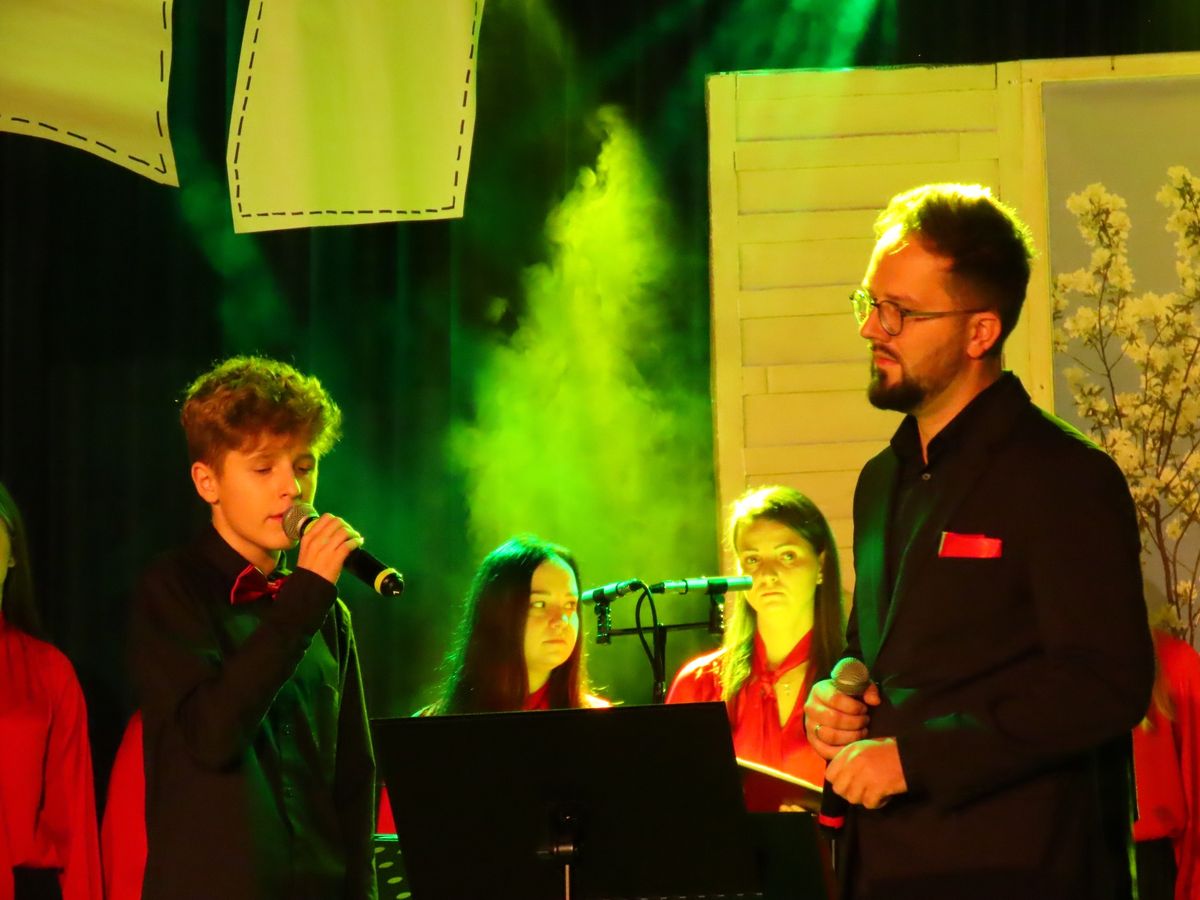 Koncert powstał z potrzeby opowiedzenia o tym , co najważniejsze – o domu. Nie tylko tym z cegieł, ale o domu jako przestrzeni bliskości, wspólnoty i wartości. W opowieści prowadzących pojawiły się słowa o pamięci, korzeniach, rodzinie, różnorodności, a także doświadczeniach, które zmieniły nasz świat – pandemii i wojnie na Ukrainie. Wzruszające teksty przeplatały się z pięknymi utworami muzycznymi, które wykonał chór Camminando, złożony z absolwentów dawnego Gimnazjum im. Kazimierza Jedrzejowskiego w Osieku, oraz uczniowie naszej szkoły: Maja Januszewska, Zuzanna Żądło, Dominik Michalak. A wszystko to według pomysłu i pod batutą Bernadety Stawowczyk-Zemanek, którą można nazwać Maestrą, Mistrzynią i Ogromny Sercem Muzycznym Osieka.
