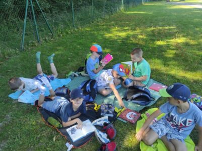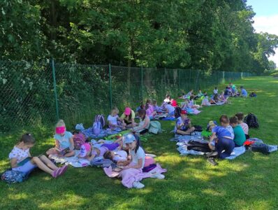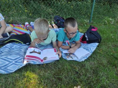 25 czerwca uczniowie klas Ia i Ib aktywnie włączyli się w ogólnopolską akcję promującą czytelnictwo. W tym dniu wspólnie czytali swoje ulubione książki w plenerze, łącząc przyjemność lektury z aktywnym spędzaniem czasu na świeżym powietrzu. Wyjście na wycieczkę było doskonałą okazją nie tylko do promocji czytania, ale również do integracji, zabawy i cieszenia się piękną pogodą.