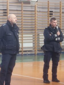 W dniu 28.02.2023r. odbyło się spotkanie z policją. Panowie policjanci: Marek Łata o az Adrian Stanek przedstawili dzieciom zagrożenia związane z użytkowaniem Internetu oraz telefonu komórkowego. Zachęcali do zachowania bezpieczeństwa w “sieci”.