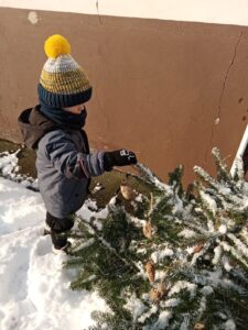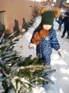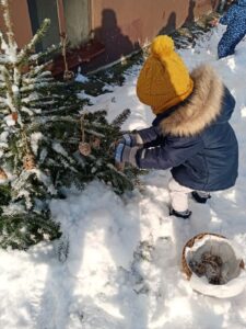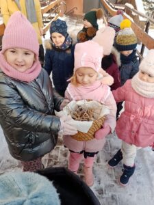 Przyszła zima, a w raz z nią nastały ciężkie czasy dla ptaków. Na szczęście w naszym przedszkolu dzieci dbają o zwierzęta i przygotowały dla nich prawdziwą ucztę.