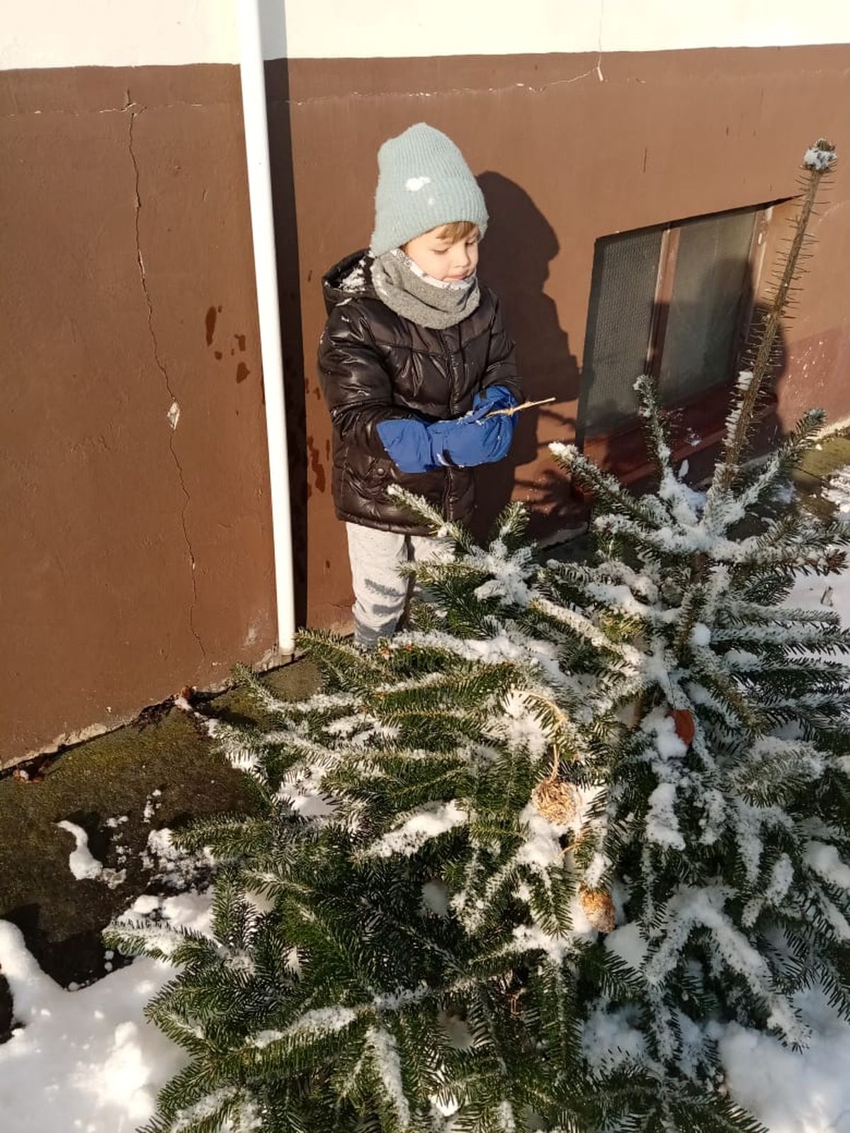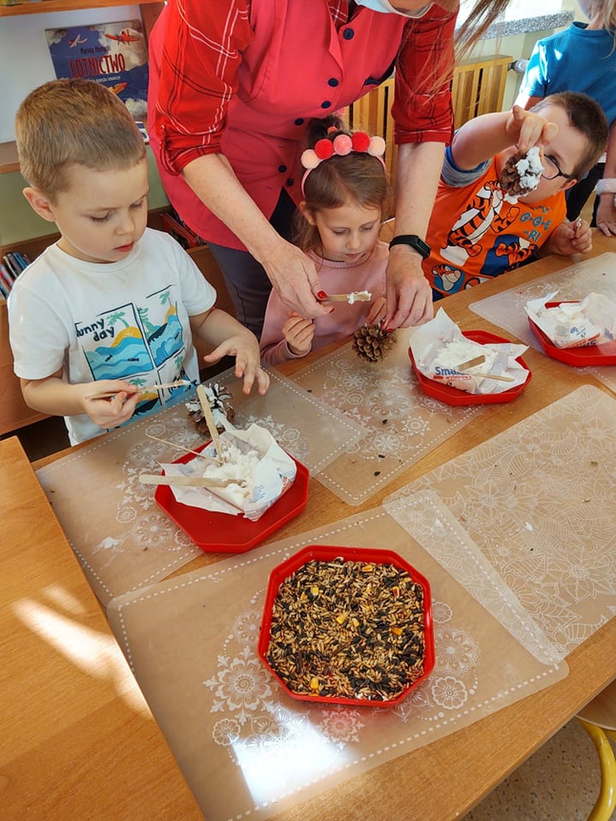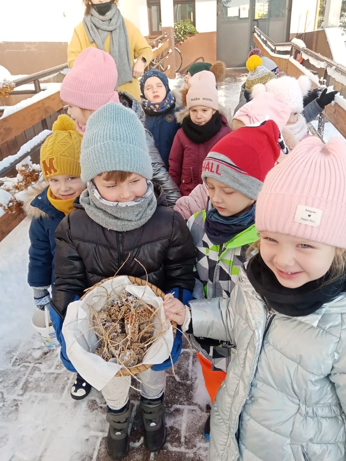 Przyszła zima, a w raz z nią nastały ciężkie czasy dla ptaków. Na szczęście w naszym przedszkolu dzieci dbają o zwierzęta i przygotowały dla nich prawdziwą ucztę.