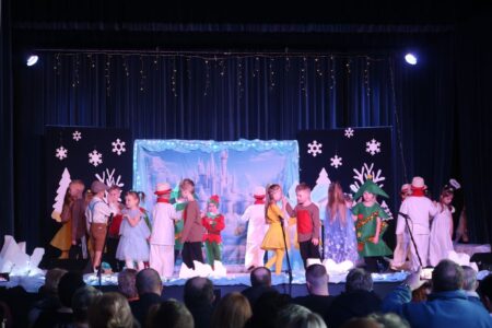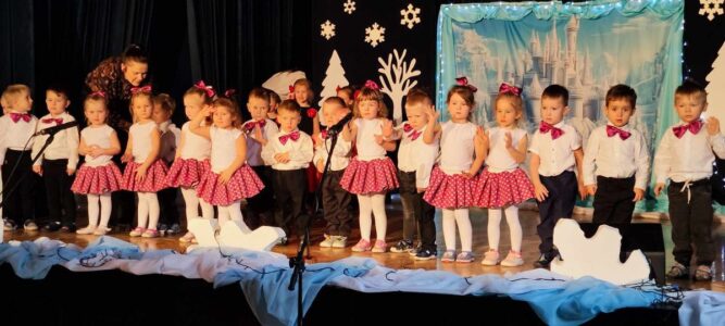 Główną atrakcją występów była inscenizacja baśni Hansa Christiana Andersena pt. “Królowa Śniegu” przygotowana przez najstarszą grupę Biedronek. Mali aktorzy wcielili się w postacie Gerdy, Kaja, Królowej Śniegu oraz innych bohaterów. Dzieci z ogromnym zaangażowaniem odgrywały swoje role, przenosząc widzów w zimowy, magiczny świat. Barwne kostiumy i scenografia stworzyły bajkowy klimat, który na długo pozostanie w pamięci gości.