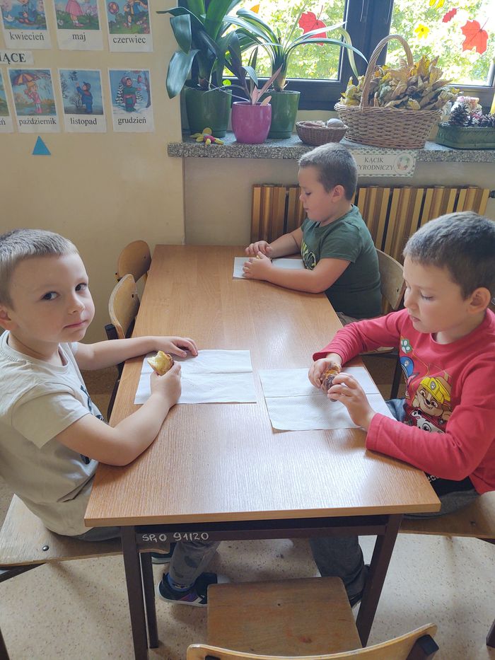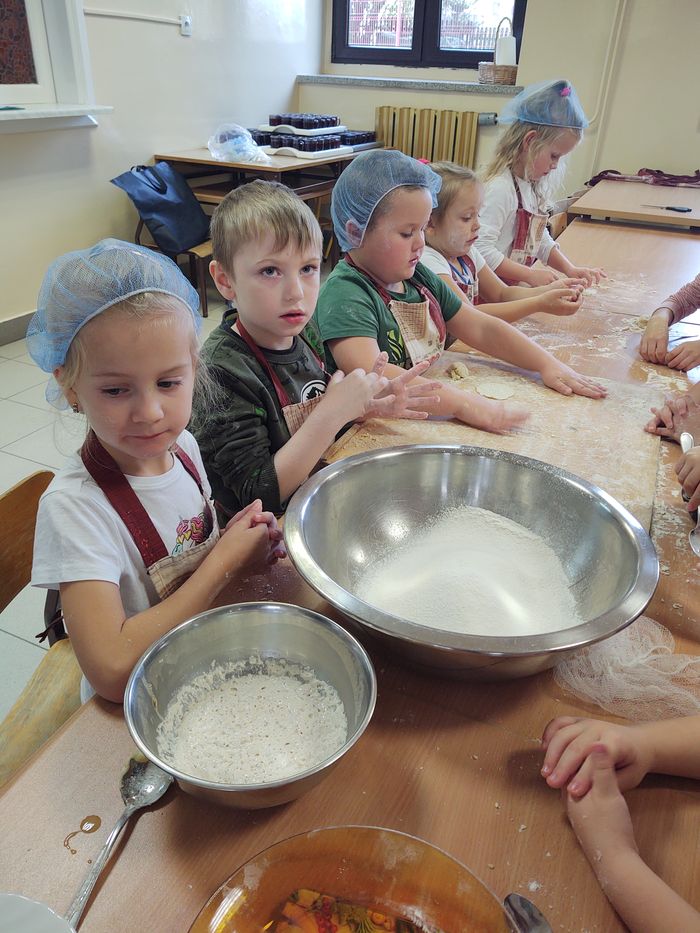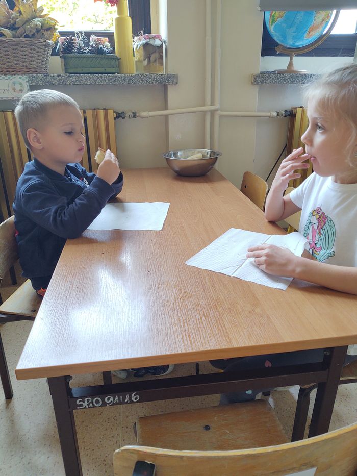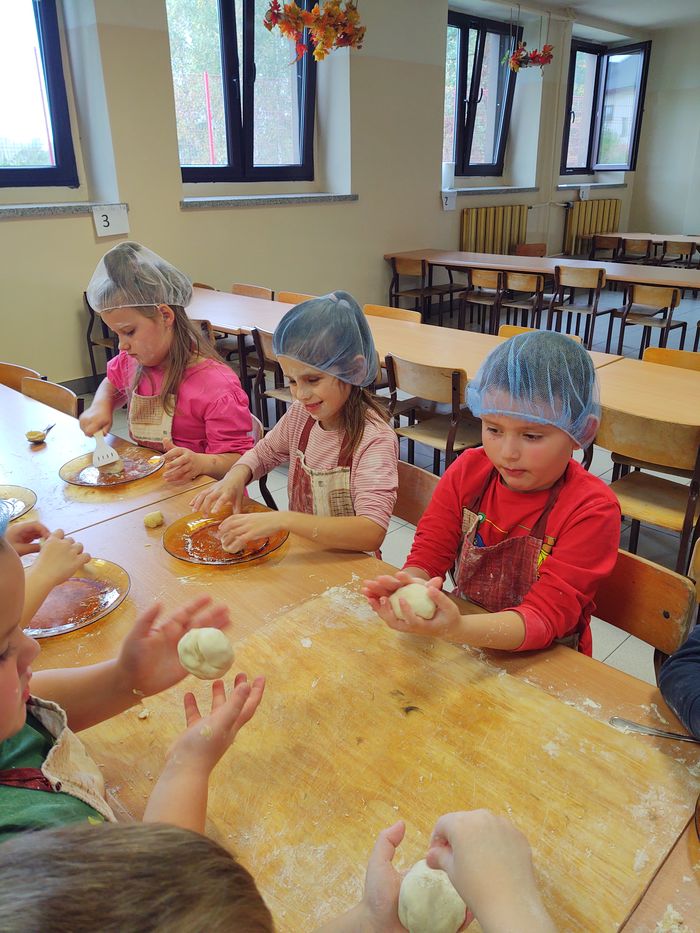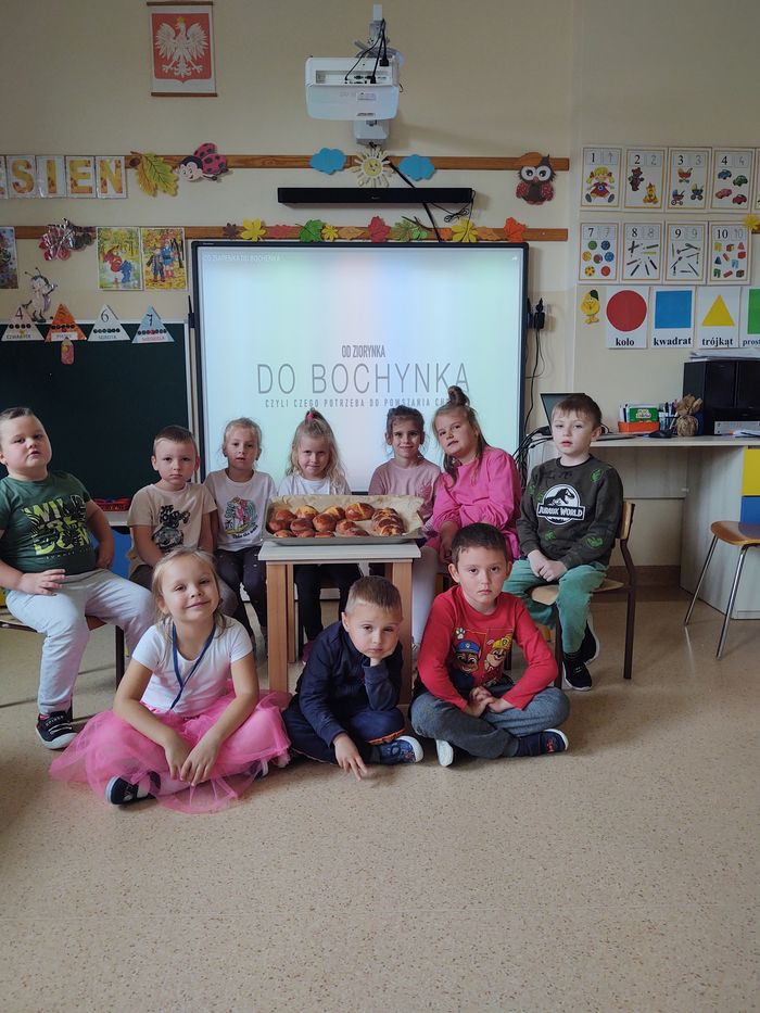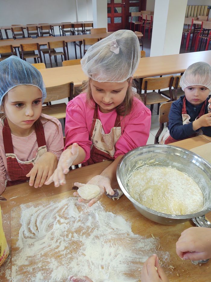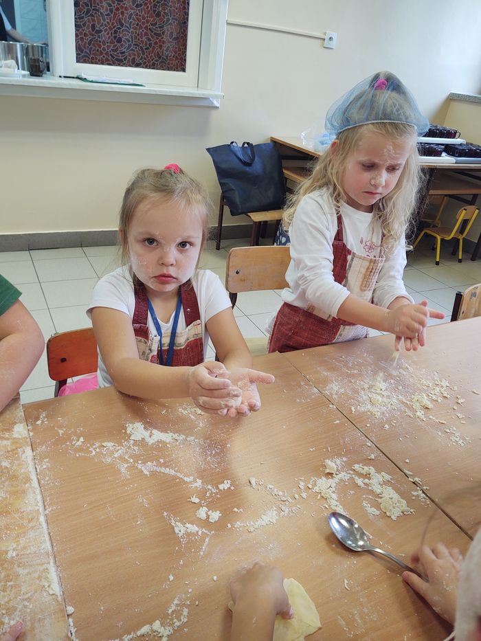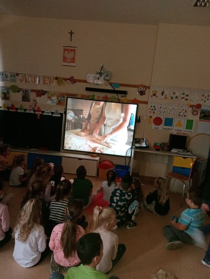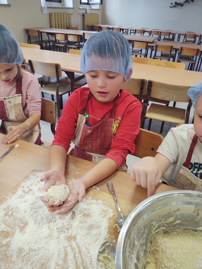 16 października obchodzony jest Światowy Dzień Chleba. Z tej okazji przedszkolaki z grupy Biedronek, w ramach innowacji „Podróż do krainy zmysłów”, zamieniły się w prawdziwych piekarzy. Podczas zajęć dzieci obejrzały film edukacyjny „Od ziarenka do bochenka”, który zaznajomił je z etapami powstawania chleba. Przedszkolaki dowiedziały się jak długą drogę musi pokonać ziarno zboża, by mogło zamienić się w pyszny chleb. Ponadto film uświadomił dzieciom jak dawniej wyglądała produkcja mąki, jak ciążka to była praca. W tym roku zamiast chleba postanowiliśmy upiec dwa rodzaje bułeczek – pszenne i drożdżowe. Proces wypieku pieczywa niej jest łatwy i wymaga czasu. Najpierw przedszkolaki poznały wszystkie składniki potrzebne do przygotowania ciasta, po czym własnoręcznie sporządziły zaczyn, który musiał przez pewien czas się odstać. W między czasie dzieci uformowały swoje pierwsze bułeczki z ciasta drożdżowego, przygotowanego wcześniej przez panie kucharki. Następnie przedszkolaki razem zarabiały ciasto na bułki pszenne. Dodawały kolejno składniki, mieszały, zagniatały, a przy okazji mogły poczuć jak pachnie zaczyn i wyrabiane ciasto. Przyrządzanie własnych bułeczek dostarczyło naszym milusińskim wielu bodźców sensorycznych, a także ogrom radości i uśmiechu na twarzy. Na koniec, kiedy bułki już się upiekły, nadszedł czas na degustację. Każdy przedszkolak spróbował własnoręcznie zrobionych bułeczek, a także zabrał je do domu, by poczęstować nimi rodzinę.