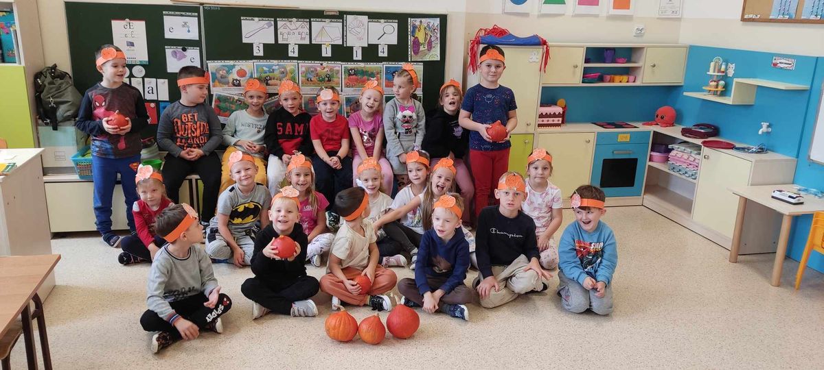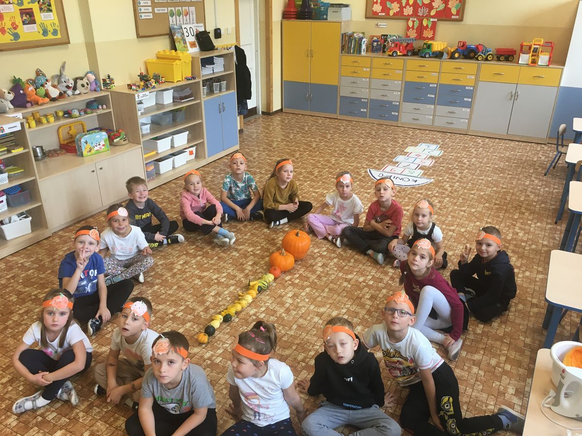 Podczas zajęć dzieci wzbogaciły swoją wiedzę na temat dyni. Dowiedziały się skąd pochodzi, czy jest warzywem czy owocem, a także jakie pyszne dania możemy z niej przyrządzić. Przedszkolaki były zaskoczone różnorodnością dyń. Oglądały, dotykały różnej wielkości i różnego ubarwienia dynie, po czym z zapałem przystąpiły do odkrywania „dyniowego wnętrza”. Dzieci wraz paniami przecinały dynie na pół, by zobaczyć jak wygląda ona w środku oraz jak pachnie. W trakcie zajęć przedszkolaki przeliczały dynie, segregowały je według określonych cech, układały od najmniejszej do największej rozwijając swoje umiejętności matematyczne. Brały również udział w zabawach ruchowych oczywiście z dynią w roli głównej.