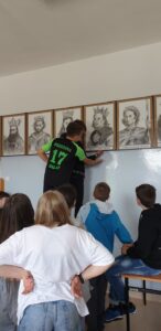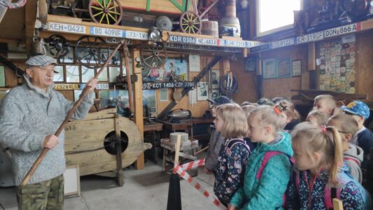 Dzięki uprzejmości pana Mariana Kocemby, uczniowie mieli okazję zwiedzenia Izby Regionalnej Doliny Karpia, która posiada bogatą kolekcję przedmiotów użytkowych, rękodzieła i sztuki. Pan Marian niezwykle interesująco opowiadał o historii zgromadzonych eksponatów. Dodatkową atrakcją towarzyszącą odwiedzinom był słodki poczęstunek.