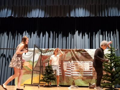 Na sali WDK w Osieku uczniowie wraz z nauczycielami obejrzeli przedstawienie„Jaś i Małgosia”, które ukazało baśniową historię w szkolnych realiach. Pozwoliło dostrzec znaczenie nauczycieli w życiu uczniów. Niejednokrotnie to właśnie nauczyciele stają się przewodnikami, pomagają odnaleźć wychowankom właściwą drogę, podjąć trafną decyzję, odkryć błędy. W rolach głównych wystąpili ósmoklasiści: Lena Sawicka – Małgosia, Kamil Kiryluk – Jaś, Jagoda Dusik – mama, Piotr Wasztyl – tata, Anna Kasperek – czarownica, Miłosz Kańtor – wilk, Gabriela Naglik – narrator. Za całokształt dzieła scenicznego odpowiadały pani Agnieszka Frazik, pani Ilona Cybuch, pani Marzena Gunia. Solistki chóru, Malwinę Bogdan oraz Julię Michalak, przygotowała pani Bernadeta Stawowczyk-Zemanek. Widzowie gromkimi oklaskami nagrodzili debiutujących aktorów.