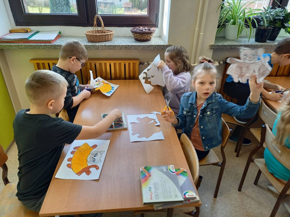 Dzieci poznały w tym dniu historię udomowienia kotów, ciekawostki na temat ich życia i zwyczajów, różne rasy kotów, nie tylko domowych, ale i dzikich. Przypomniały sobie również bajki, których głównymi bohaterami były te zwierzaki. Nie zabrakło kocich zabaw takich jak np.: wyścigi z kłębkiem wełny, czy łapanie myszek. Na koniec dzieci zrobiły również papierowe figurki tych puszystych przyjaciół człowieka.