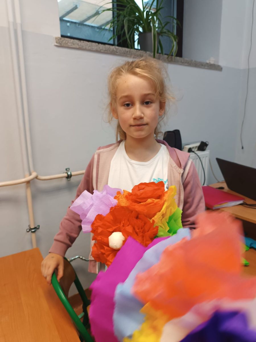 Wychowawcy świetlicy wraz z uczniami chcieli podziękować wszystkim mamom za opiekę i miłość jaką codziennie otaczają swoje dzieci. Uczniowie przygotowali kwiaty z bibuły, serca owijane czerwoną włóczką oraz kartki z życzeniami dla swoich mam. Dzieci przede wszystkim życzyły swoim mamom zdrowia, szczęścia, pomyślności oraz uśmiechu na co dzień.