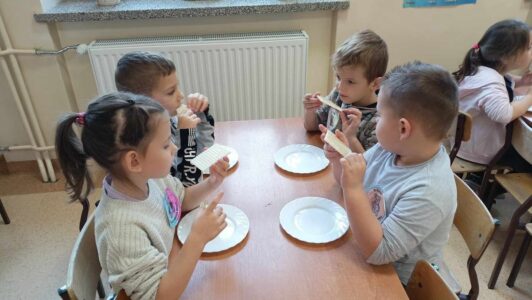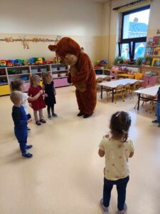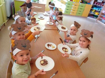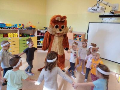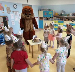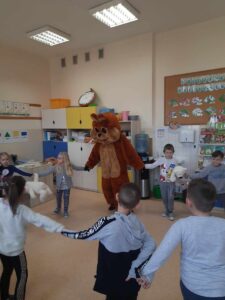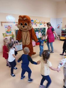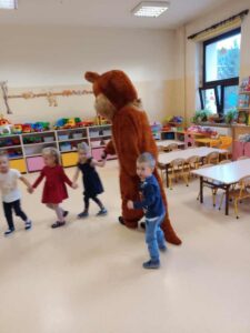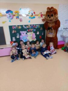 Dzieci poznały historię pluszowego misia, bawiły się do misiowych przebojów, poznały misie z bajek dawnych lat. Nie zabrakło również słodkiego poczęstunku oraz wspólnego pamiątkowego zdjęcia. Nasze przedszkolaki odwiedził również wyjątkowy gość, a był nim duży miś maskotka. Każda grupa przedszkolna uczciła ten dzień na swój sposób i wykonała piękne, misiowe prace plastyczne.