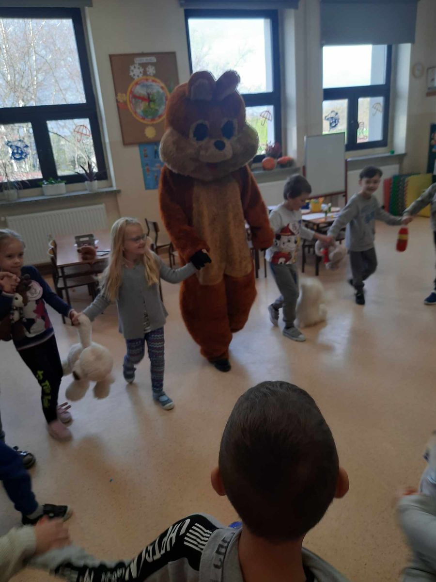 Dzieci poznały historię pluszowego misia, bawiły się do misiowych przebojów, poznały misie z bajek dawnych lat. Nie zabrakło również słodkiego poczęstunku oraz wspólnego pamiątkowego zdjęcia. Nasze przedszkolaki odwiedził również wyjątkowy gość, a był nim duży miś maskotka. Każda grupa przedszkolna uczciła ten dzień na swój sposób i wykonała piękne, misiowe prace plastyczne.