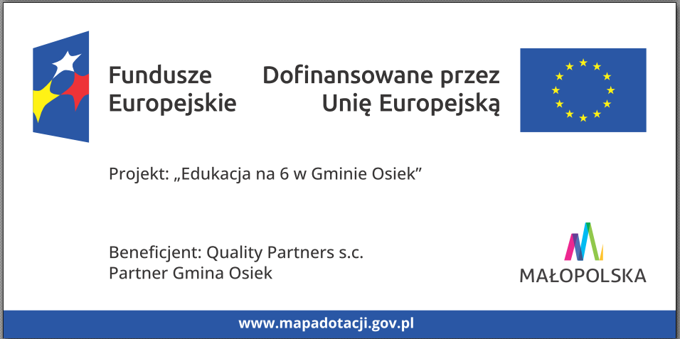Quality Partners w Partnerstwie z Gminą Osiek realizuję projekt pt.  Edukacja na 6 w Gminie Osiek – Projekt współfinansowany ze środków Unii Europejskiej w ramach Europejskiego Funduszu Społecznego Plus.