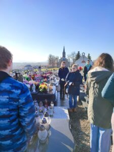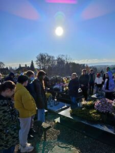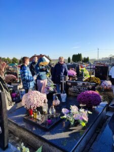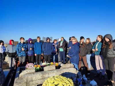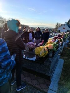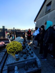 23.11.2021 r. uczniowie klasy VIII c oraz VIII a SP nr 1 w Osieku byli uczestnikami czwartego spaceru edukacyjnego zorganizowanego przez Muzeum Pamięci Mieszkańców Ziemi Oświęcimskiej. Spacer w towarzystwie Pań edukatorek MPMZO: Anity Bury oraz Joanny Cebulskiej odbywał się ramach projektu „Pamiętamy”. Jego celem jest identyfikacja grobów, w których zostały pochowane osoby niosące pomoc więźniom niemieckiego obozu Auschwitz oraz upamiętnienie bohaterów ziemi oświęcimskiej walczących na frontach II wojny światowej. Uczniowie odwiedzili groby: Józefa Sali, Stefana Rusina, Franciszka Kacorzyka, Andrzeja Jarzyny, Wawrzyńca Mleczka, Karola Kruczały oraz księdza Władysława Grohsa. Usłyszeli także ciekawostki i fakty z życia tych bohaterów. Zapalili też znicze aby dać wyraz pamięci.