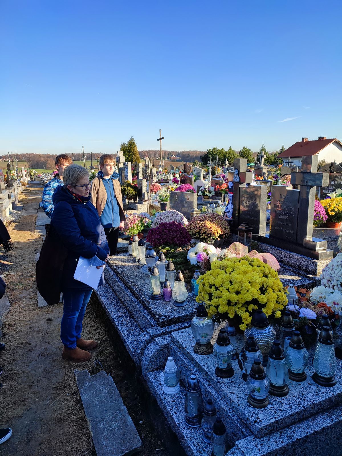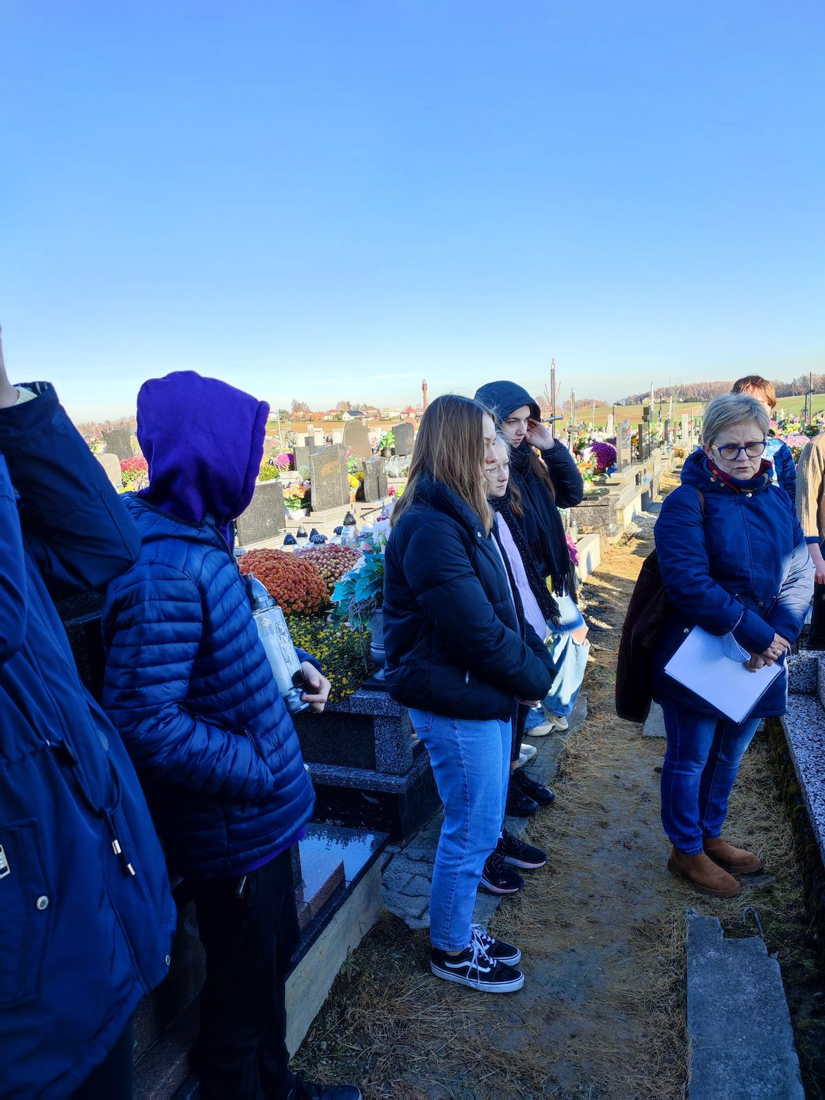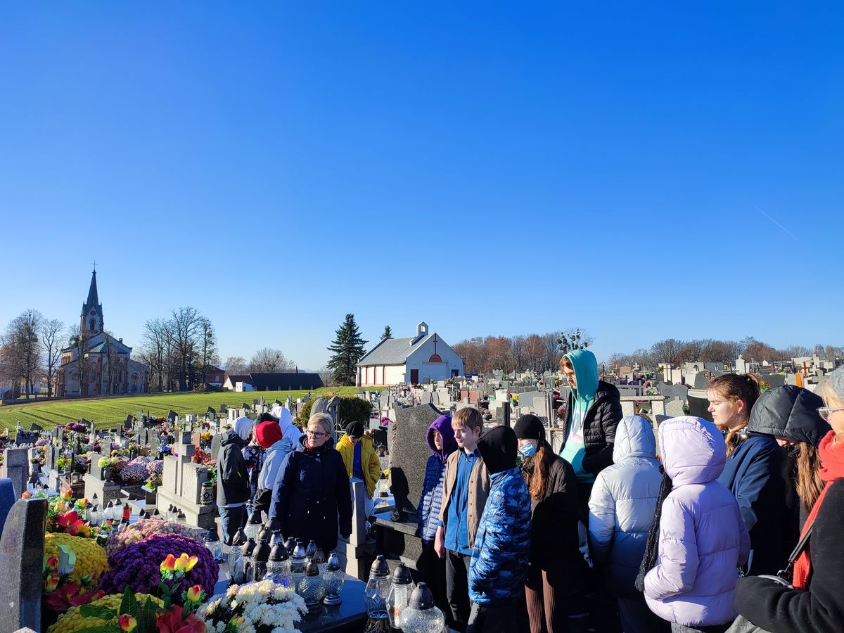 23.11.2021 r. uczniowie klasy VIII c oraz VIII a SP nr 1 w Osieku byli uczestnikami czwartego spaceru edukacyjnego zorganizowanego przez Muzeum Pamięci Mieszkańców Ziemi Oświęcimskiej. Spacer w towarzystwie Pań edukatorek MPMZO: Anity Bury oraz Joanny Cebulskiej odbywał się ramach projektu „Pamiętamy”. Jego celem jest identyfikacja grobów, w których zostały pochowane osoby niosące pomoc więźniom niemieckiego obozu Auschwitz oraz upamiętnienie bohaterów ziemi oświęcimskiej walczących na frontach II wojny światowej. Uczniowie odwiedzili groby: Józefa Sali, Stefana Rusina, Franciszka Kacorzyka, Andrzeja Jarzyny, Wawrzyńca Mleczka, Karola Kruczały oraz księdza Władysława Grohsa. Usłyszeli także ciekawostki i fakty z życia tych bohaterów. Zapalili też znicze aby dać wyraz pamięci.