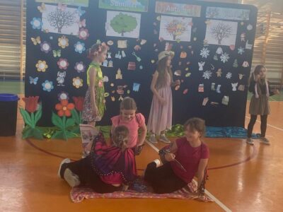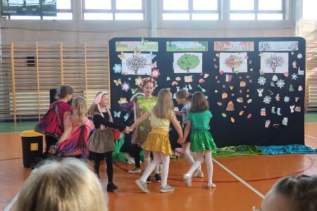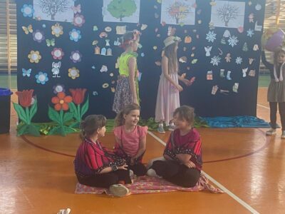 Dnia 29.04.2024r. na sali gimnastycznej odbył się apel, podczas którego uczennice uczęszczające na świetlicę szkolną wystawiły sztukę teatralną pt. Four seasons – Cztery pory roku. W przedstawieniu poruszono tematy przyjaźni, akceptacji i świadomości ekologicznej. Bohaterkami sztuki były cztery pory roku oraz towarzyszące im kwiaty, motyle, króliki i śnieżynki. Przedstawienie miało charakter dydaktyczny i było w całości przygotowane w języku angielskim.