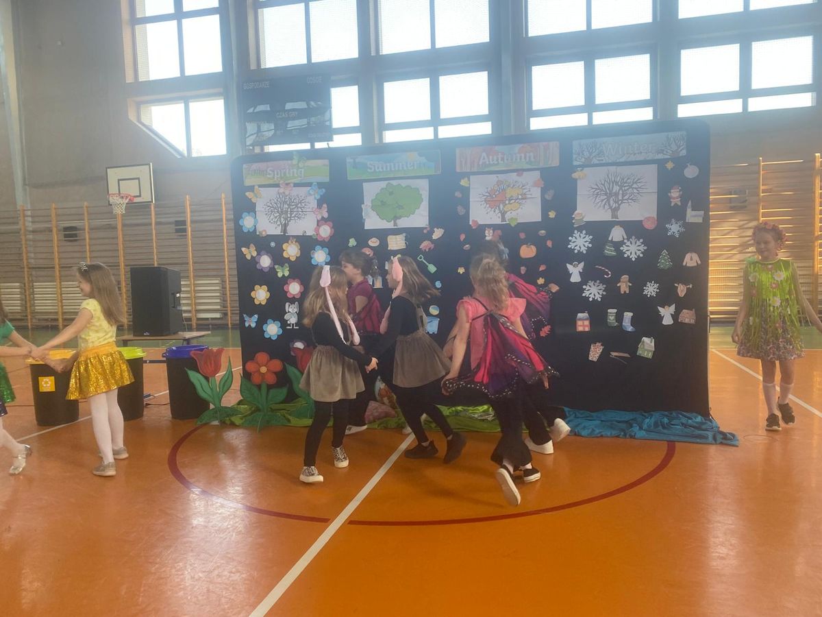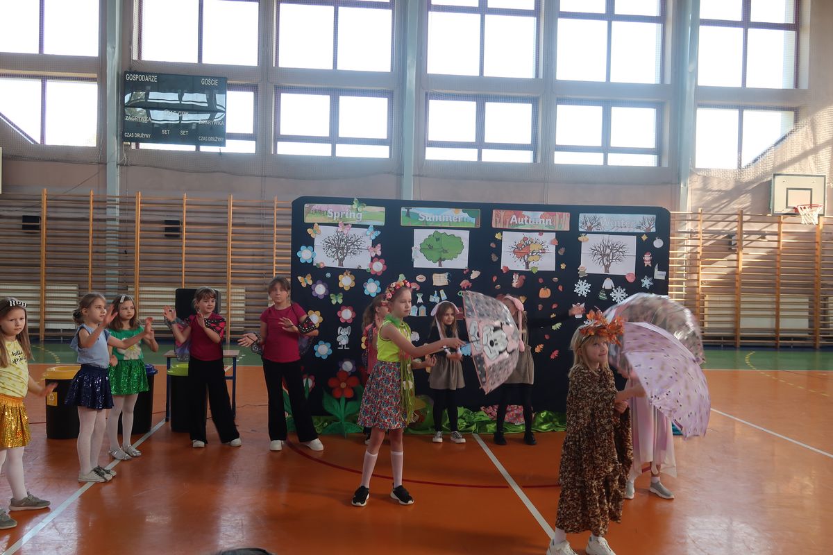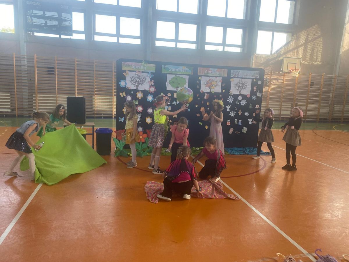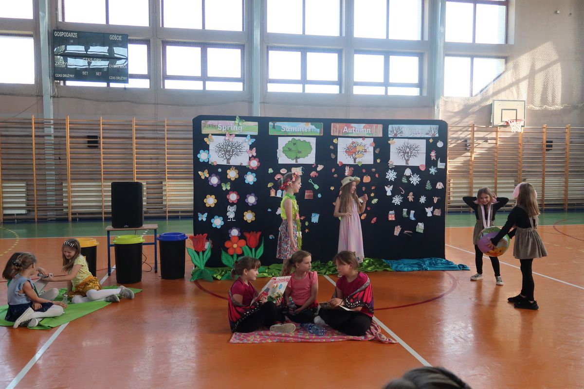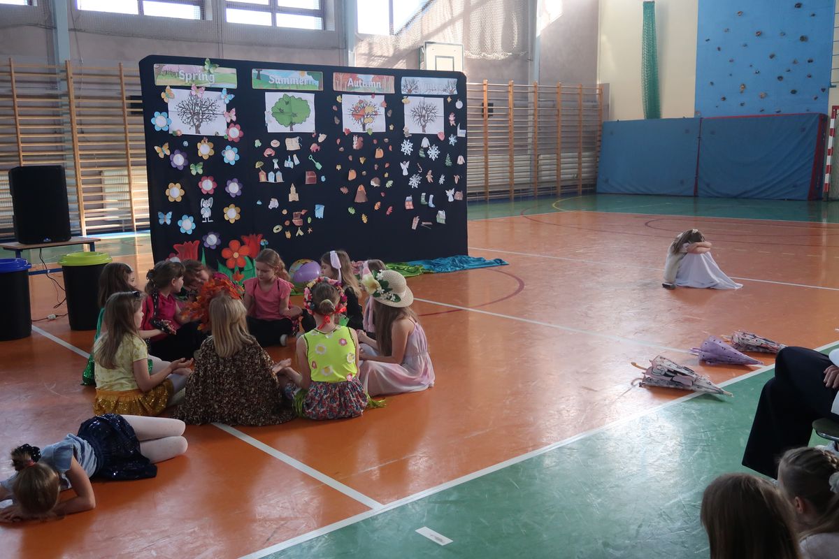 Dnia 29.04.2024r. na sali gimnastycznej odbył się apel, podczas którego uczennice uczęszczające na świetlicę szkolną wystawiły sztukę teatralną pt. Four seasons – Cztery pory roku. W przedstawieniu poruszono tematy przyjaźni, akceptacji i świadomości ekologicznej. Bohaterkami sztuki były cztery pory roku oraz towarzyszące im kwiaty, motyle, króliki i śnieżynki. Przedstawienie miało charakter dydaktyczny i było w całości przygotowane w języku angielskim.