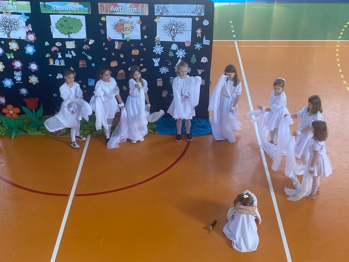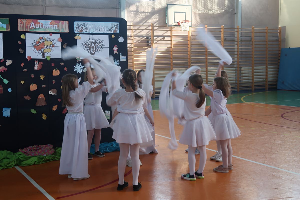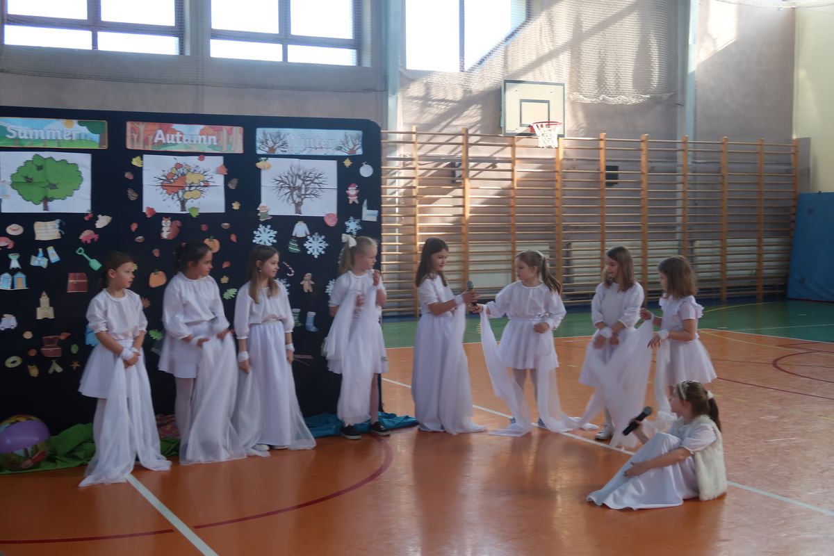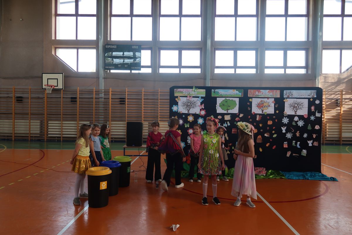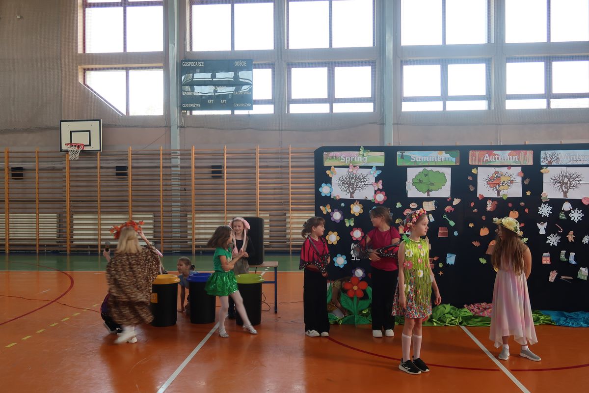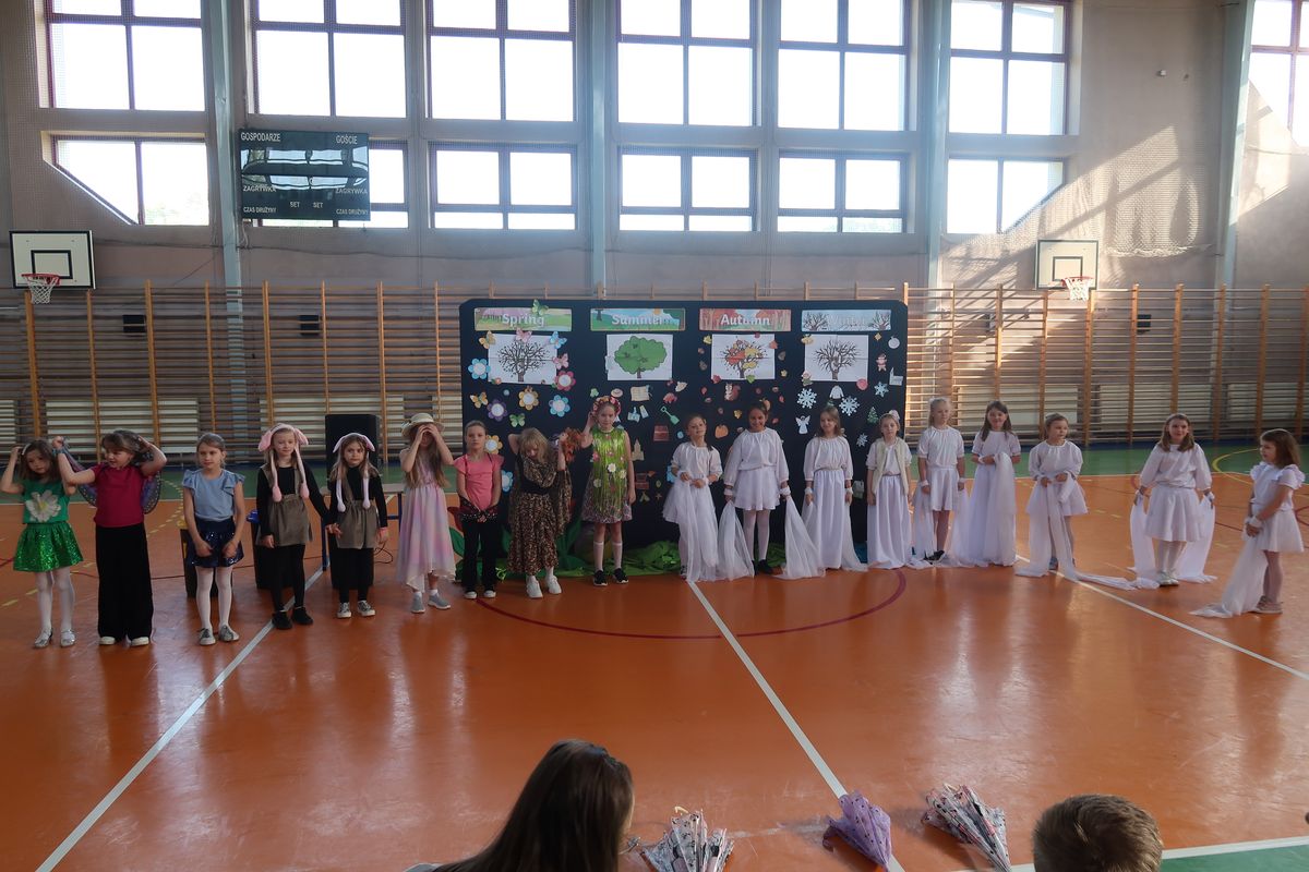 Dnia 29.04.2024r. na sali gimnastycznej odbył się apel, podczas którego uczennice uczęszczające na świetlicę szkolną wystawiły sztukę teatralną pt. Four seasons – Cztery pory roku. W przedstawieniu poruszono tematy przyjaźni, akceptacji i świadomości ekologicznej. Bohaterkami sztuki były cztery pory roku oraz towarzyszące im kwiaty, motyle, króliki i śnieżynki. Przedstawienie miało charakter dydaktyczny i było w całości przygotowane w języku angielskim.