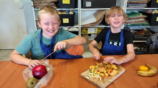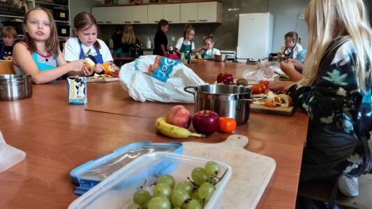 Warsztaty były świetną okazją do rozmowy o zdrowym stylu życia i codziennym sięganiu po owoce zamiast słodyczy. Na zakończenie uczniowie wspólnie degustowali swoje dzieła, odkrywając, że zdrowe jedzenie może być smaczne, kolorowe i pięknie podane.