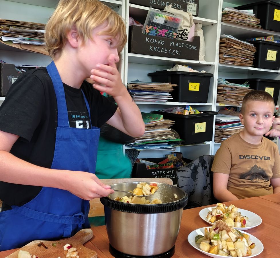 Warsztaty były świetną okazją do rozmowy o zdrowym stylu życia i codziennym sięganiu po owoce zamiast słodyczy. Na zakończenie uczniowie wspólnie degustowali swoje dzieła, odkrywając, że zdrowe jedzenie może być smaczne, kolorowe i pięknie podane.