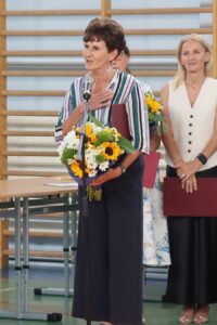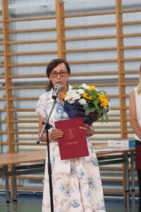 Następnie głos zabrał wójt Gminy Osiek, pan Marek Jasiński, który wyraził uznanie dla osiągnięć uczniów, nazywając ich ambasadorami gminy. Podziękował nauczycielom, dyrekcji, Radzie Rodziców i wszystkim pracownikom szkoły za ich trud, zaangażowanie i codzienną pracę. Na zakończenie złożył wszystkim życzenia bezpiecznych, radosnych wakacji oraz zaprosił na zbliżające się Dni Osieka – coroczne święto lokalnej społeczności.