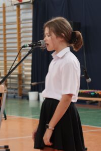 Po tej części absolwenci klas ósmych zaprezentowali tradycyjny taniec – Poloneza. Ich dostojny, pełen gracji taniec był nie tylko pięknym ukoronowaniem lat spędzonych w szkole, ale również symbolem pożegnania z tym ważnym etapem życia. Występ absolwentów spotkał się z gorącym aplauzem wszystkich zgromadzonych, podkreślając wyjątkowość i podniosłość tego momentu.