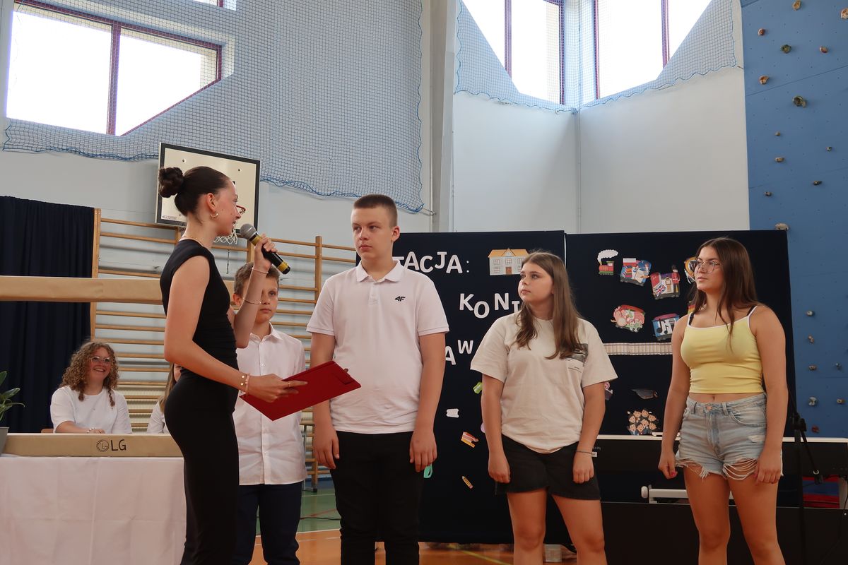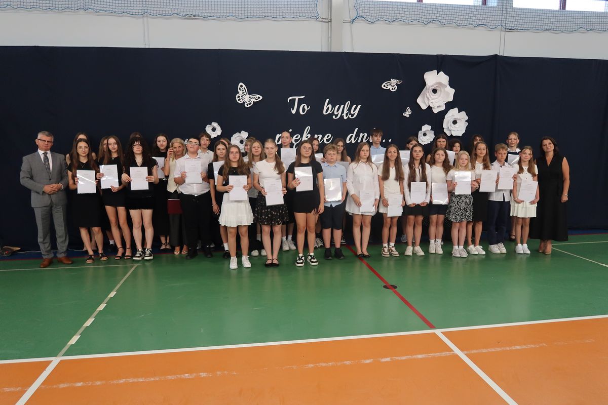 Po nim nastąpiło uroczyste rozdanie świadectw z wyróżnieniem. Uczniowie, którzy uzyskali bardzo dobre wyniki, zostali uhonorowani na forum całej społeczności szkolnej. Rodzice najlepszych uczniów z klas ósmych otrzymali listy gratulacyjne – wyraz wdzięczności za wspieranie dzieci na drodze edukacji i wychowania.