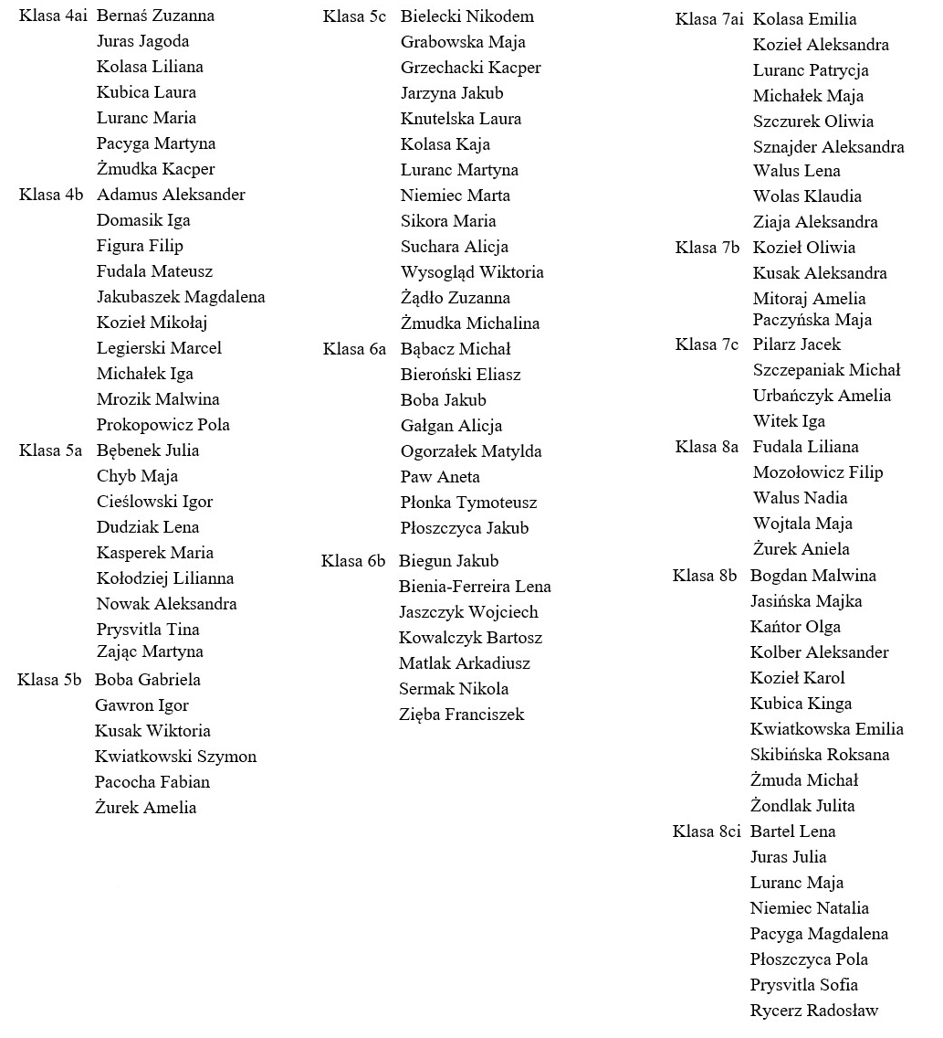 Uczniowie, którzy otrzymali świadectwa z wyróżnieniem: