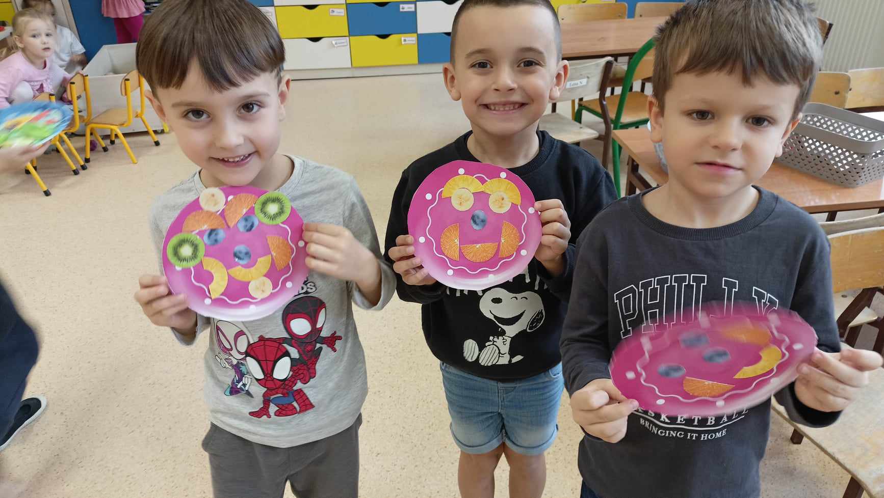 W ubiegły tygodniu grupa ”Biedronek” zmierzyła się z pierwszą „misją” jaką przygotował dla nich Kubuś, a była to: „Misja SKLEP – Na tropie mądrych zakupów i życia w zgodzie z naturą.” Podczas realizacji misji dzieci nauczyły się: jak dbać o siebie,dbając o klimat; dlaczego mówi się,że ruch to zdrowie; dlaczego warto jeść owoce i warzywa; co to znaczy jeść sezonowo oraz jak mądrze robić zakupy.
