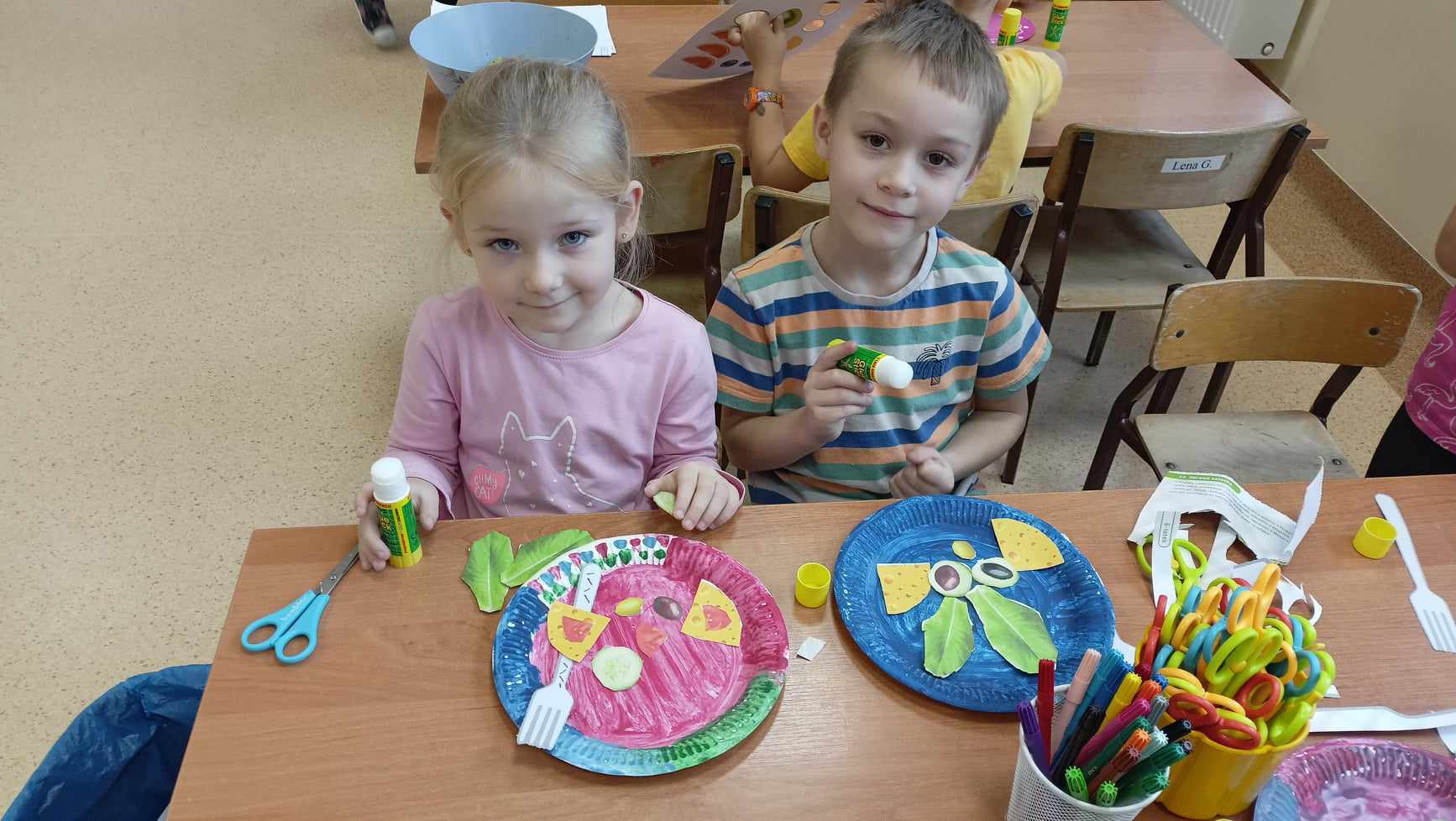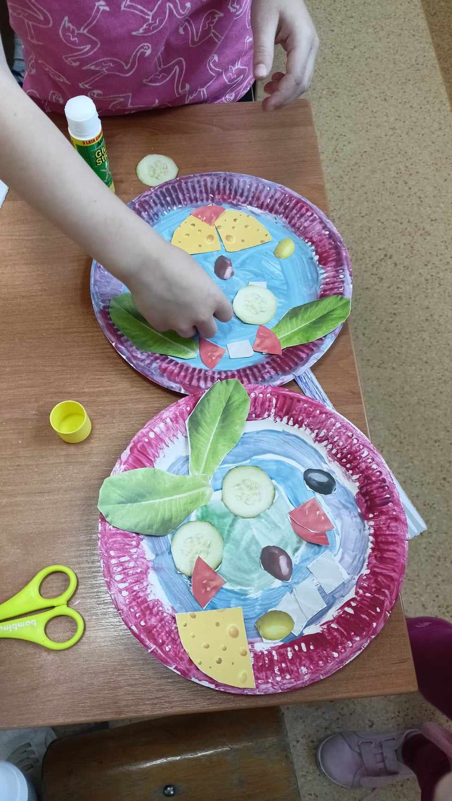 Przedszkolaki wykonały torbę na zakupy wielokrotnego użytku, samodzielnie zrobiły zakupy w przedszkolnym sklepie, oraz wykonały „Talerz zdrowego żywienia”.