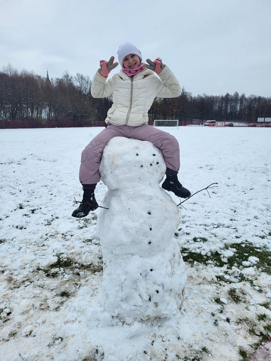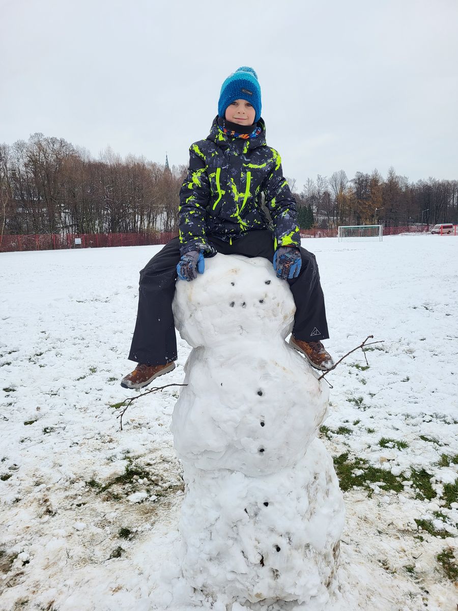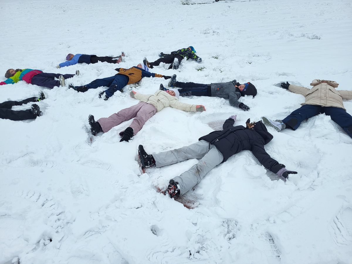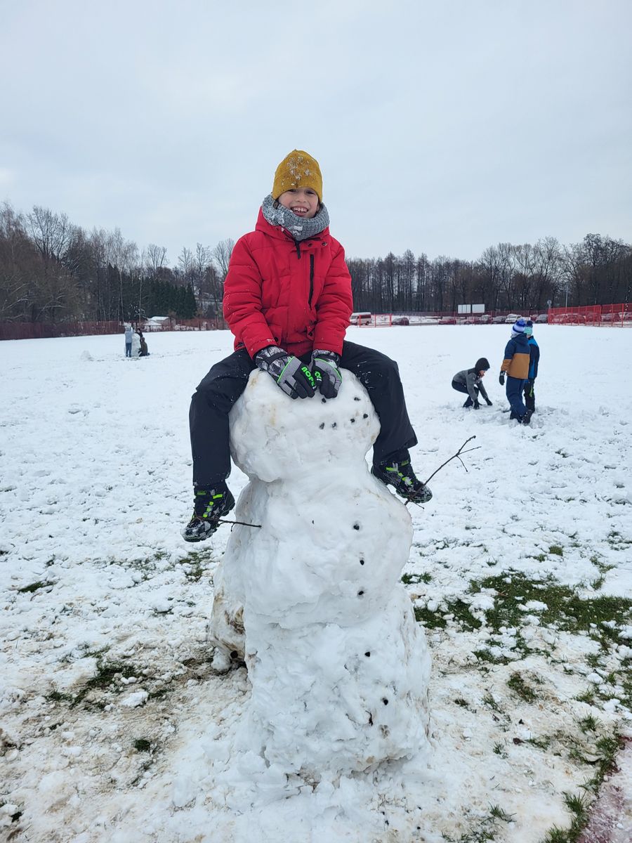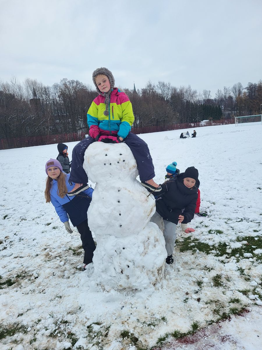 Nie zabrakło także innych zimowych aktywności. Uczniowie chętnie robili aniołki na śniegu, a także z uśmiechem na twarzy uczestniczyli w rzucaniu się śnieżkami. Zabawa była pełna pozytywnych emocji, a czas spędzony razem na świeżym powietrzu sprzyjał budowaniu dobrych relacji.