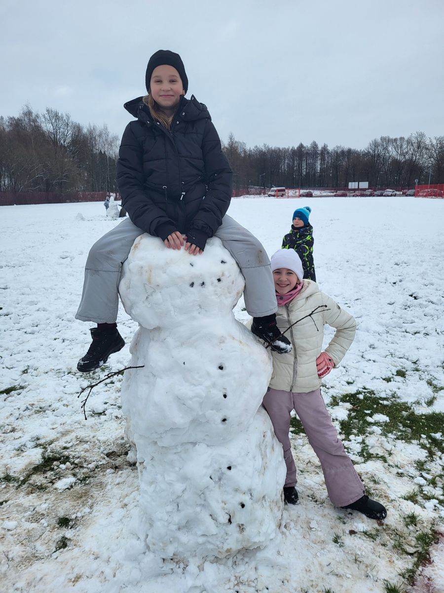 Uczniowie klasy 4a z zapałem zabrali się do lepienia bałwanów. Praca w grupach pokazała, że współpraca i dobre pomysły potrafią przynieść świetne efekty.