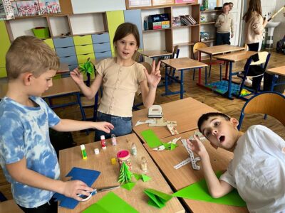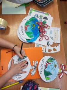 Uczniowie uczęszczający na świetlicę szkolną już poczuli magię świat. Przy dźwiękach popularnych świątecznych utworów wykonywali różne prace plastyczne m.in. Mikołaja z podkręconą brodą, piernikowe ludziki, pomponiki z włóczki, makramowe ozdoby, kolorowe bombki z życzeniami, choinki origami oraz zimowe domki. Dzieci uczestniczyły w świątecznych zabawach ruchowych z wykorzystaniem narzędzi multimedialnych m.in. segregacja wyimaginowanych prezentów,
