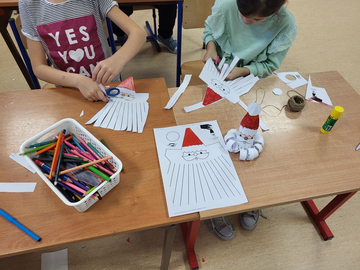 Uczniowie uczęszczający na świetlicę szkolną już poczuli magię świat. Przy dźwiękach popularnych świątecznych utworów wykonywali różne prace plastyczne m.in. Mikołaja z podkręconą brodą, piernikowe ludziki, pomponiki z włóczki, makramowe ozdoby, kolorowe bombki z życzeniami, choinki origami oraz zimowe domki. Dzieci uczestniczyły w świątecznych zabawach ruchowych z wykorzystaniem narzędzi multimedialnych m.in. segregacja wyimaginowanych prezentów,