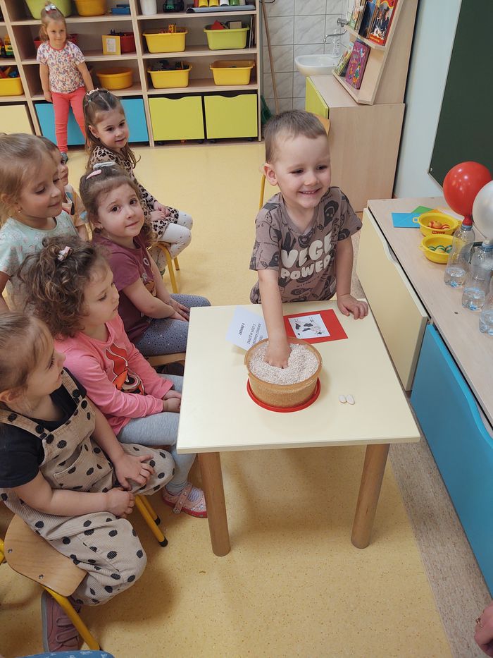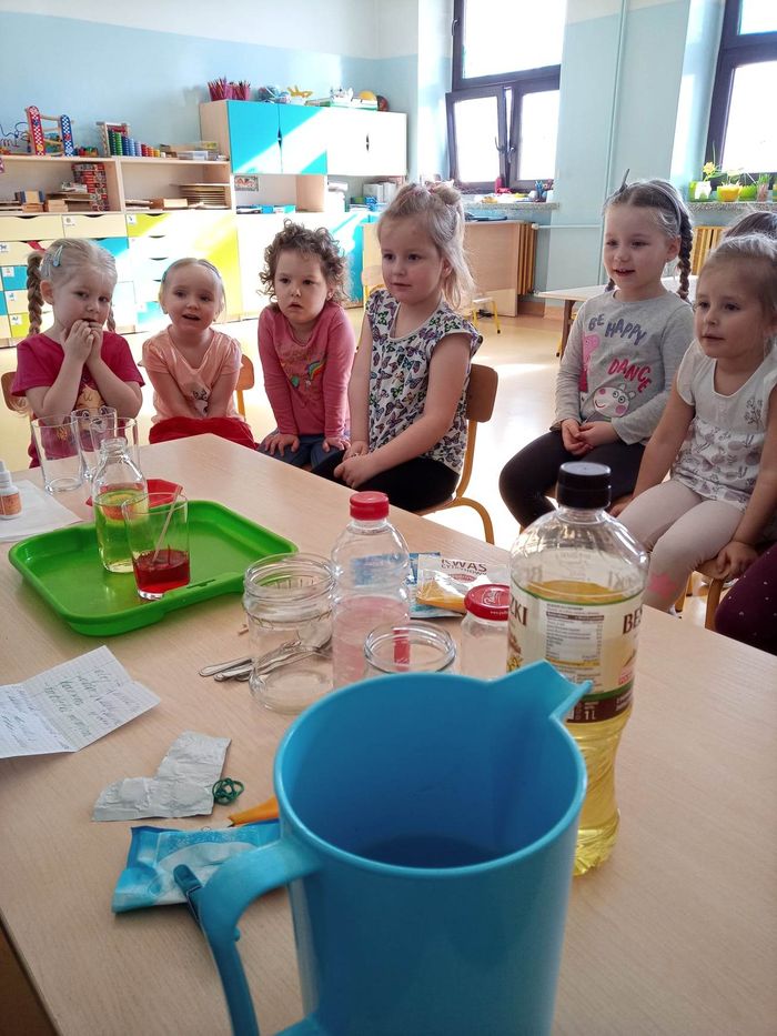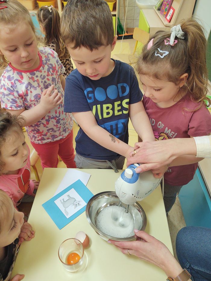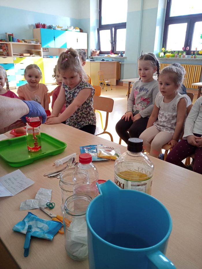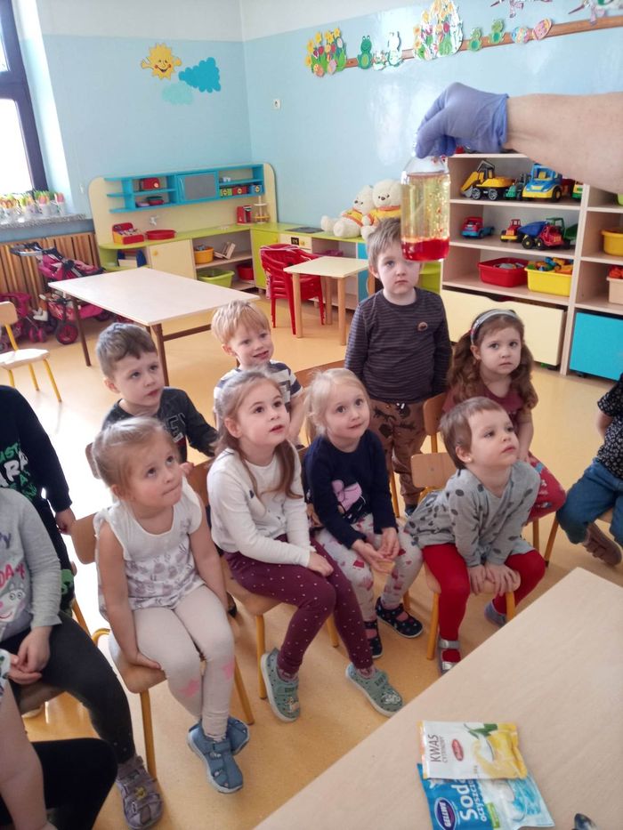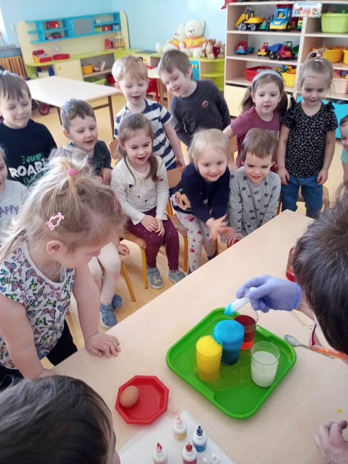 W myśl chińskiego filozofa Konfucjusza w grupie Zajączków odbyły się bardzo ciekawe zajęcia badawcze. Zajęcia o charakterze eksperymentu, zwane również zabawami badawczymi są niezwykle istotne w wielokierunkowym rozwoju dziecka oraz zaspokajaniu naturalnej ciekawości poznawania otaczającego je świata. Tego typu zabawy pozwalają na doświadczanie nowych wrażeń, odkrywanie nieznanych dotychczas właściwości przedmiotów i zjawisk, prowadzenie obserwacji oraz wyciąganie trafnych wniosków z przeprowadzonych eksperymentów. Na zajęciach dzieci wykonywały różnorodne doświadczenia z wodą. Była lawa w butelce, kolorowe wulkany, tańczący olej i burza w szklance wody. Oprócz tego przedszkolaki eksperymentowały z jajkami. Oddzielały żółtka od białek za pomocą butelki oraz ubijały białka. Jakież było zdziwienie dzieci, gdy okazało się, że ubite białka nie spadną nam na głowę! Zajączki wykonały również doświadczenie „gumowe jajko” z octem, a także dowiedziały się jak można nadmuchać balony przy użyciu octu oraz sody oczyszczonej. Zabawy te przyniosły dzieciom mnóstwo radości.