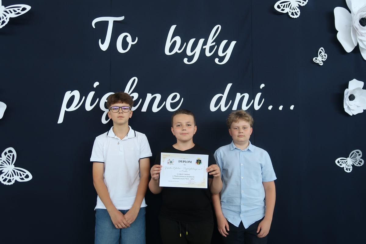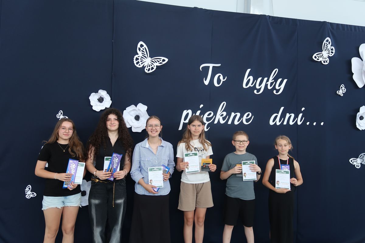 Jakub Twardowski z klasy II b, Kacper Tyran z klasy III a,  Amelia Frej z klasy III b, Tina Prysvitla z klasy V a, Klaudia Wolas z klasy VII ai oraz Olga Kańtor z klasy VIII b za najlepsze wyniki