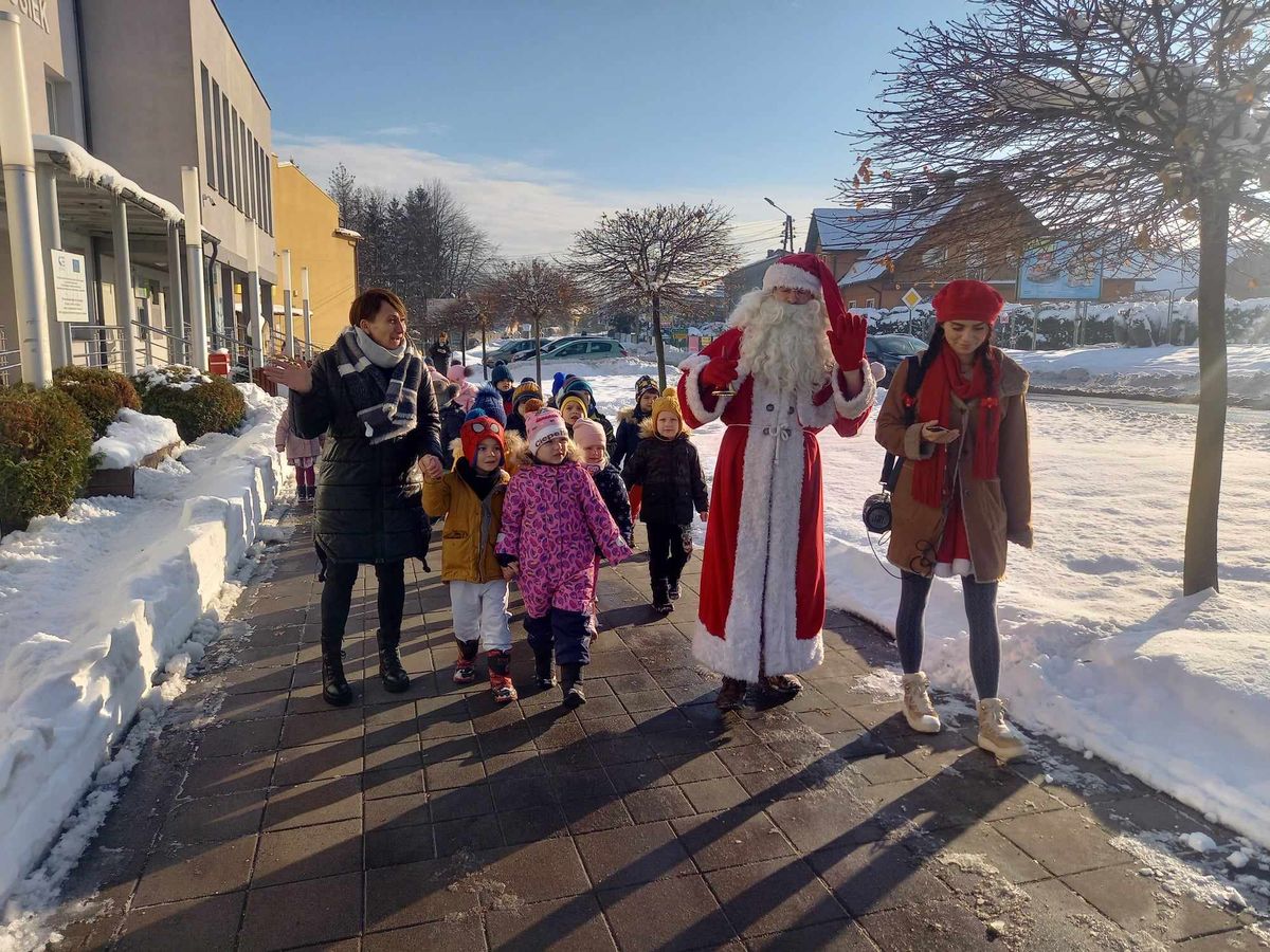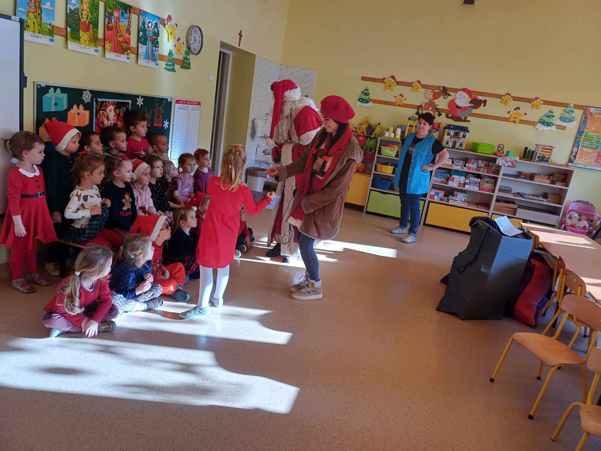 Spotkanie rozpoczęło się w sali WDK w Osieku, gdzie przedszkolaki obejrzały spektakl pt. „Zimowe przygody Krysi Kaprysi” w wykonaniu krakowskiego Teatru Skrzat. Następnie dzieci razem z Mikołajem i jego pomocnicą przemaszerowały do przedszkola. Tam Mikołaj podziękował za wszystkie nadesłane do niego listy, po czym wręczył przedszkolakom wymarzone prezenty dla każdej grupy przedszkolnej, a także paczuszkę pełną łakoci dla każdego dziecka z osobna. Przedszkolaki powitały Mikołaja pięknymi piosenkami, a także zrobiły sobie z nim pamiątkowe zdjęcia. Po spotkaniu dzieci z radością rozpakowały prezenty i od razu przystąpiły do zabawy nowymi zabawkami.