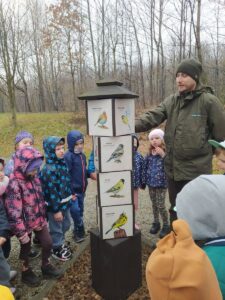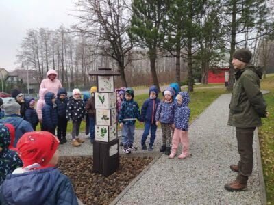 Końcem marca nasze przedszkolaki w ramach innowacji edukacyjnej „Czas na las” wybrały się na wycieczkę do Nadleśnictwa Andrychów, gdzie pan leśniczy oprowadził dzieci po ścieżce edukacyjnej „Leśne cuda”. Tematyką opracowanej ścieżki dydaktycznej jest różnorodność flory oraz fauny w polskich lasach. Przedszkolaki miały możliwość zapoznania się z najbardziej charakterystycznymi ptakami, grzybami, roślinami, owocami runa leśnego oraz głównymi gatunkami drzew występującymi w naszych lasach. Trasa składa się z różnorodnej infrastruktury w postaci tablic edukacyjnych, kostek wiedzy czy też zgadywanek, na których dzieci miały możliwość sprawdzenie swojej wiedzy leśnej. Całość dopełnia duży ogrodzony obszar zielony, dzięki czemu możliwe jest obcowanie z przyrodą.