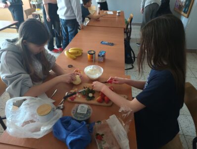 Zajęcia były doskonałą okazją do nauki współpracy, rozwijania umiejętności kulinarnych oraz poznawania nowych smaków. Największą nagrodą była oczywiście wspólna degustacja przygotowanych potraw.