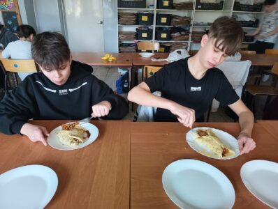 Uczniowie klasy 7a po raz kolejny udowodnili, że nauka może być nie tylko ciekawa, ale i bardzo smaczna. Podczas zajęć kulinarnych młodzież samodzielnie przygotowywała naleśniki w różnych, apetycznych odsłonach.