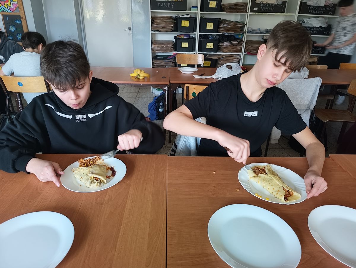 Uczniowie klasy 7a po raz kolejny udowodnili, że nauka może być nie tylko ciekawa, ale i bardzo smaczna. Podczas zajęć kulinarnych młodzież samodzielnie przygotowywała naleśniki w różnych, apetycznych odsłonach.