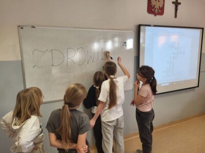 W ramach jednej z aktywności, dzieci miały okazję rozwiązać krzyżówkę, której hasłem było „zdrowie”. Ta kreatywna forma zabawy pomogła dzieciom w przyswajaniu wiedzy na temat korzyści płynących z dbałości o zdrowie. Krzyżówka składała się z haseł dotyczących zdrowego trybu życia, takich jak: aktywność fizyczna, odpowiednia dieta, unikanie używek, a także dbanie o higienę. Poprzez zabawę uczniowie utrwalili informacje, które będą miały realny wpływ na ich codzienne decyzje.