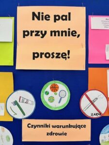 Od czego zależy nasze zdrowie? – to kolejne zajęcia przeprowadzone w ramach profilaktycznego programu „Nie pal przy mnie, proszę”. Uczniowie kształtowali postawy odpowiedzialności za własne zdrowie. Zapoznali się z czynnikami warunkującymi stan naszego organizmu oraz podawali przykłady co robić, by być zdrowym. Celem zajęć było zaprezentowanie szeroko rozumianych czynników zdrowotnych, środowiskowych, genetycznych, społecznych, które mogą skutecznie wpływać na poprawę zdrowia człowieka. Zwrócono uwagę, że zachowania zdrowotne jednostki znacząco oddziałują na zdrowie, jego utrzymanie oraz umacnianie. Podkreślenie, że nasze zdrowie kształtujemy w ciągu całego swojego życia.