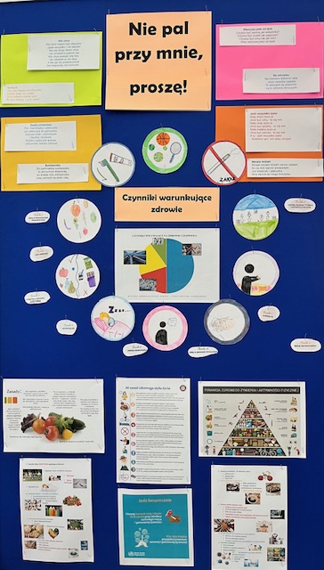 Od czego zależy nasze zdrowie? – to kolejne zajęcia przeprowadzone w ramach profilaktycznego programu „Nie pal przy mnie, proszę”. Uczniowie kształtowali postawy odpowiedzialności za własne zdrowie. Zapoznali się z czynnikami warunkującymi stan naszego organizmu oraz podawali przykłady co robić, by być zdrowym. Celem zajęć było zaprezentowanie szeroko rozumianych czynników zdrowotnych, środowiskowych, genetycznych, społecznych, które mogą skutecznie wpływać na poprawę zdrowia człowieka. Zwrócono uwagę, że zachowania zdrowotne jednostki znacząco oddziałują na zdrowie, jego utrzymanie oraz umacnianie. Podkreślenie, że nasze zdrowie kształtujemy w ciągu całego swojego życia.