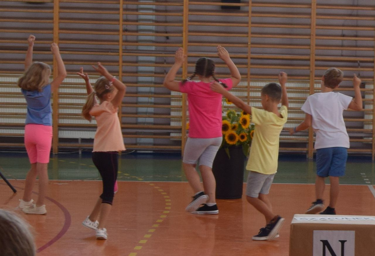 Po części oficjalnej nastąpiła część artystyczna w wykonaniu uczniów klas 2 wraz z paniami Anną Kacorzyk i Anetą Kałą. Dzieci w radosny, energiczny i żywiołowy sposób zwróciły uwagę na ważne rzeczy, przede wszystkim uśmiech, który ociepli każde relacje. Przy pomocy świetnie przygotowanych rekwizytów zaprezentowały wartości naszej szkoły: szacunek, tolerancję, mądrość, dobro, radość, prawdę, entuzjazm, wiedzę, pasję, kreatywność, sukces. Wykonali także układ taneczny. Na uwagę zasługuje fakt, iż uczniowie poświęcili kilka ostatnich, wakacyjnych dni, by uczestniczyć w próbach do występu, który okazał się ich pierwszym sukcesem w tym roku szkolnym i został nagrodzony gromkimi brawami.