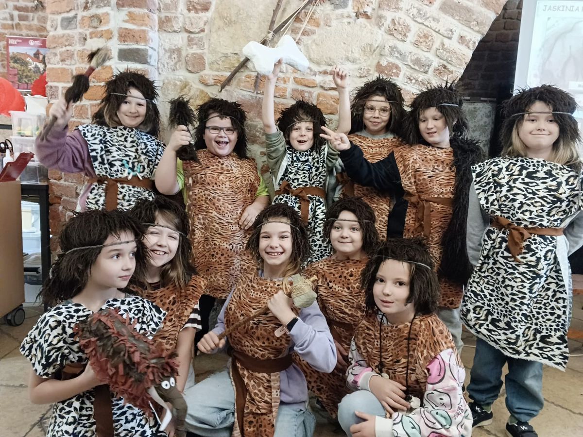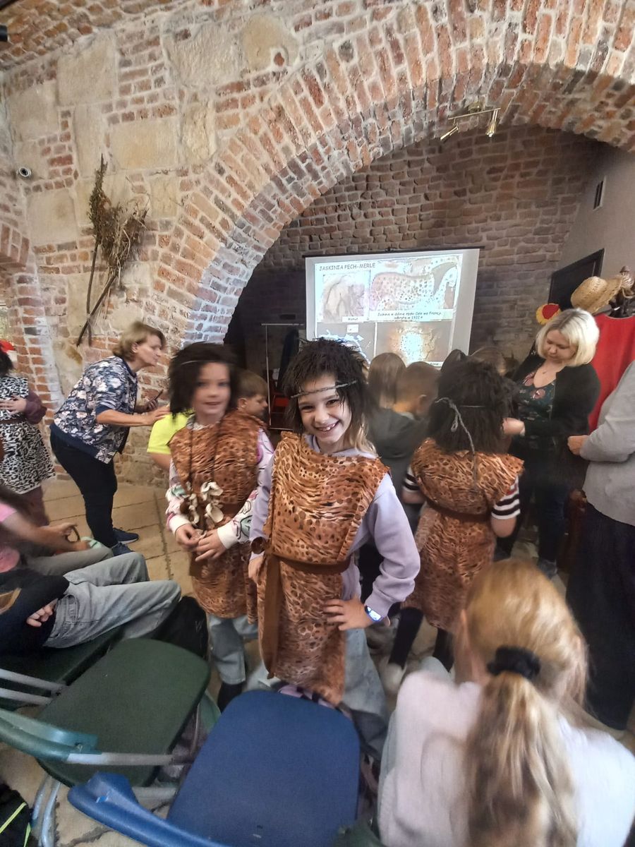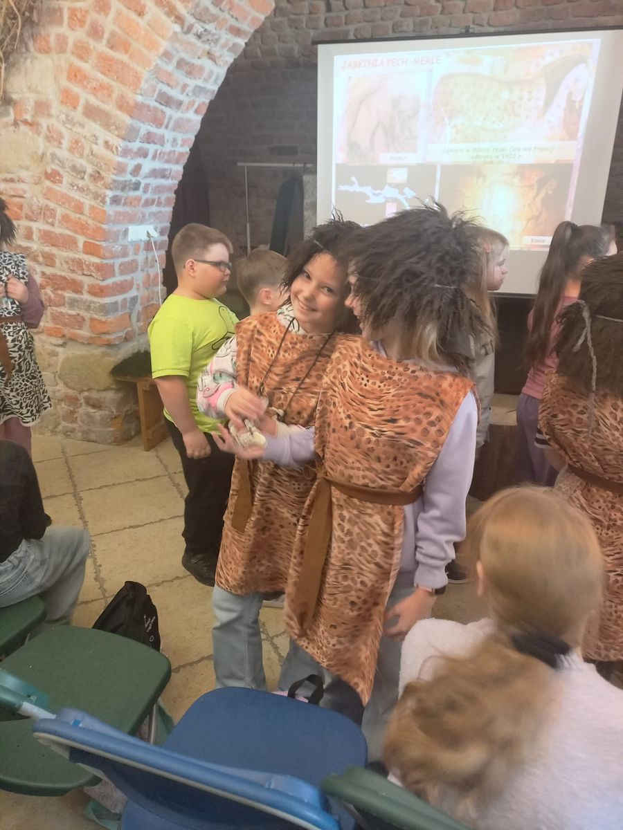 14 listopada trzecioklasiści odwiedzili Muzeum Zamek w Oświęcimiu, gdzie uczestniczyli w warsztatach „Prehistoria – na tropach jaskiniowców” . W ramach zajęć dzieci poznały życie codzienne ludzi prehistorycznych: dowiedzieli się jak zdobywali oni pożywienie, gdzie mieszkali, jak się ubierali. Ponadto dzieci zobaczyły piękne malowidła naskalne pozostawione w jaskiniach. Atrakcją, która wywołała ogrom uśmiechów było przebieranie się w stroje jaskiniowców. Nie mniej interesująca okazała się część plastyczna zajęć, podczas której uczniowie wykonali „prehistoryczne” obrazki zwierząt oraz rysunki na kamieniu.