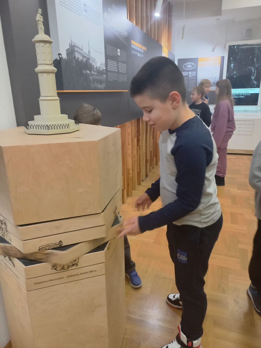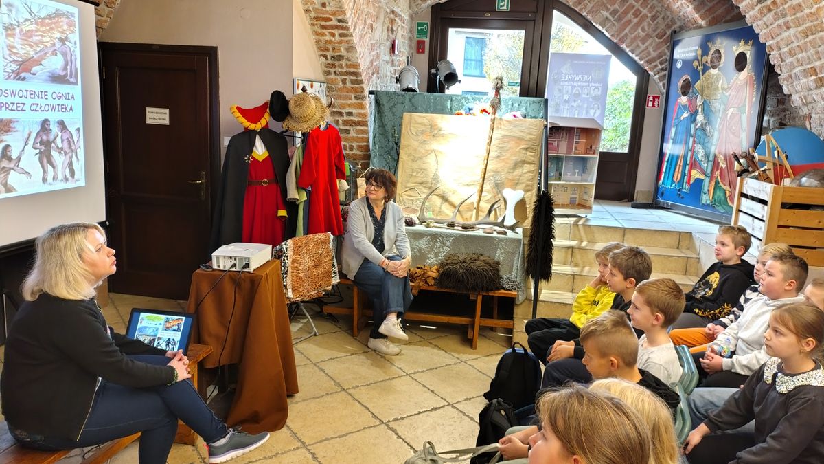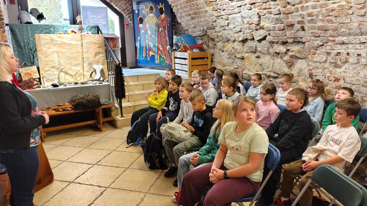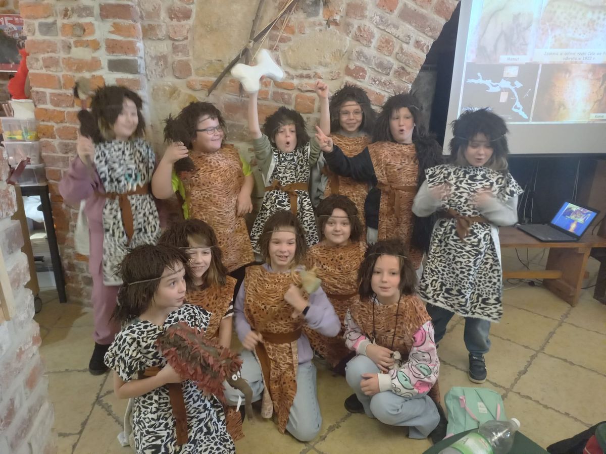 14 listopada trzecioklasiści odwiedzili Muzeum Zamek w Oświęcimiu, gdzie uczestniczyli w warsztatach „Prehistoria – na tropach jaskiniowców” . W ramach zajęć dzieci poznały życie codzienne ludzi prehistorycznych: dowiedzieli się jak zdobywali oni pożywienie, gdzie mieszkali, jak się ubierali. Ponadto dzieci zobaczyły piękne malowidła naskalne pozostawione w jaskiniach. Atrakcją, która wywołała ogrom uśmiechów było przebieranie się w stroje jaskiniowców. Nie mniej interesująca okazała się część plastyczna zajęć, podczas której uczniowie wykonali „prehistoryczne” obrazki zwierząt oraz rysunki na kamieniu.
